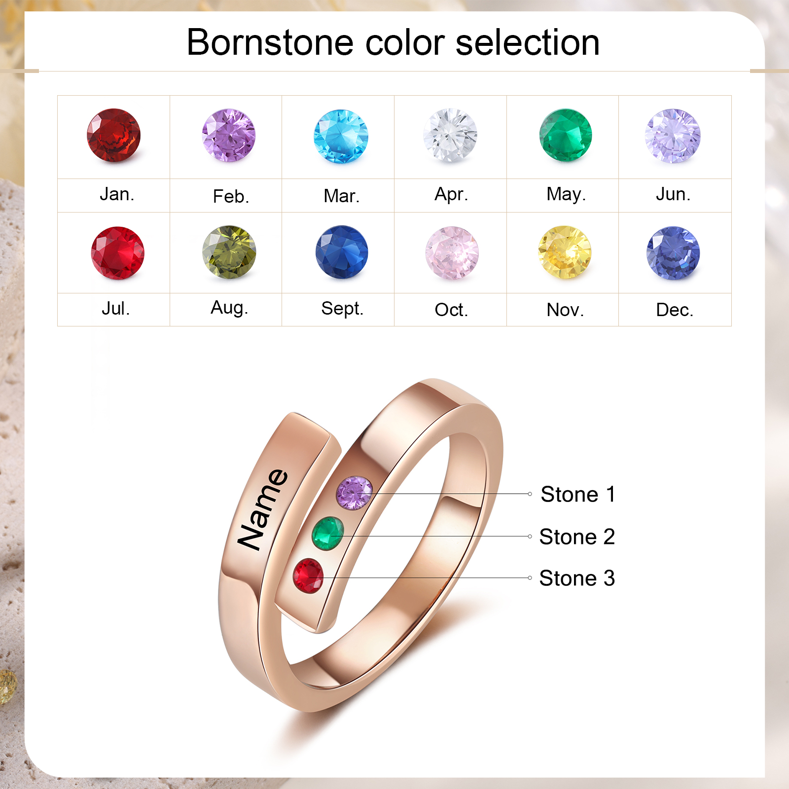 Personalized 3 Birthstones Ring Custom Mother Ring
