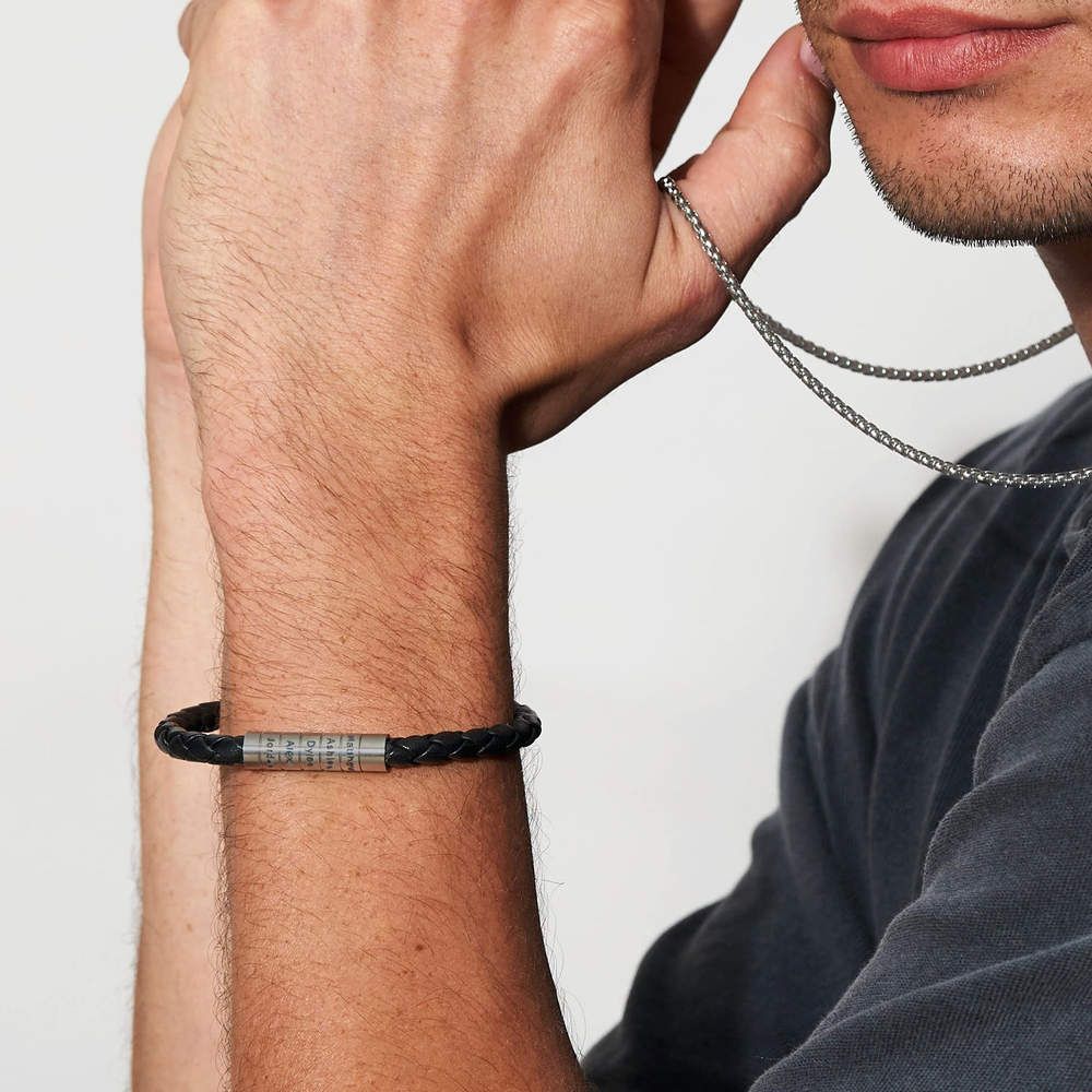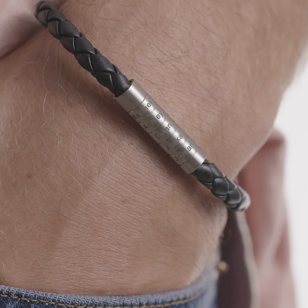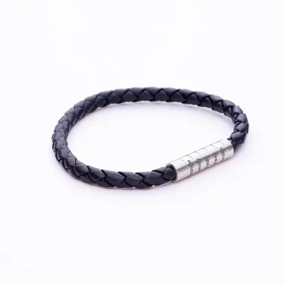 Custom Men Braided Leather Bracelet with Magnetic Clasp Engrave 3 Names Beaded Wrap Bracelet For Father's Day