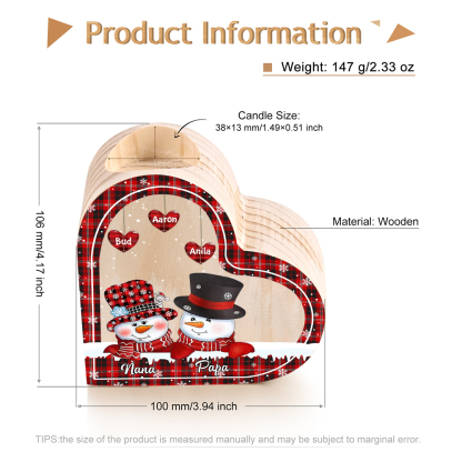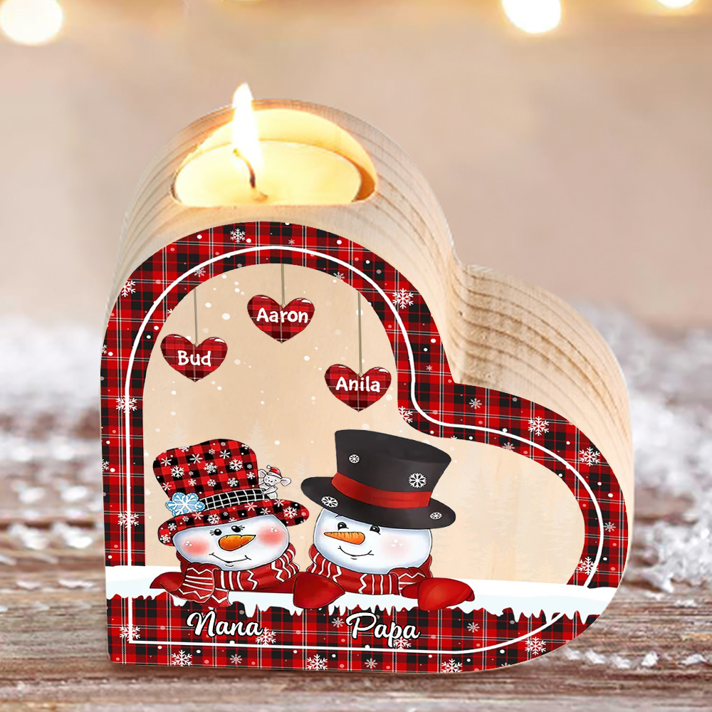 Heart-Shaped Christmas Candle Holder Engraved 5 Names Snowman Candlesticks Personalized Gift for Family