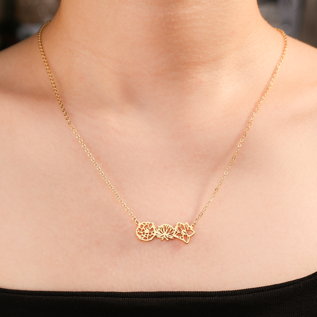 Personalized 3 Birthday Flowers Necklace Gold Custom Pendant Necklace Birthday Gift for Her