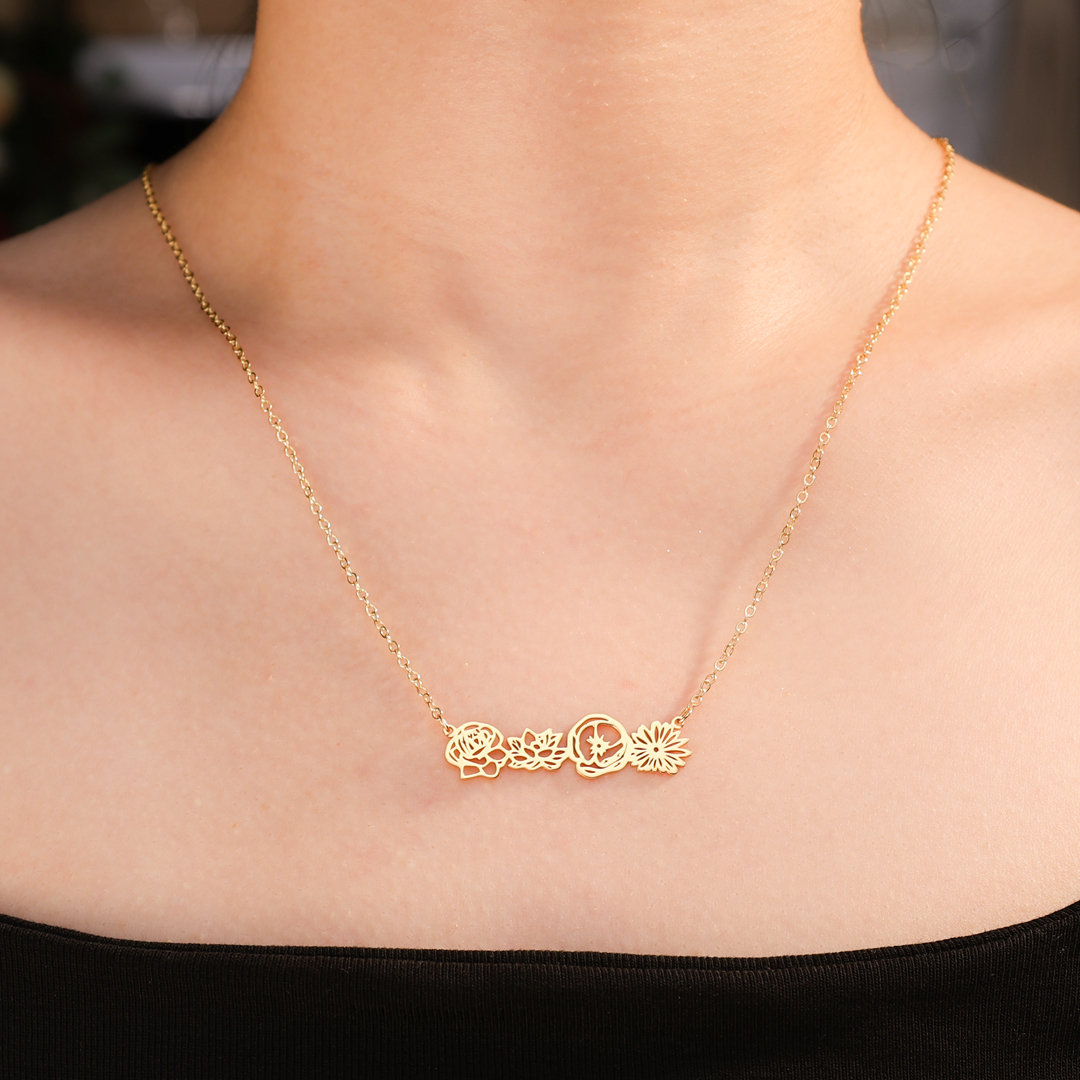 Personalized 4 Birthday Flowers Necklace Gold Custom Pendant Necklace Birthday Gift for Her