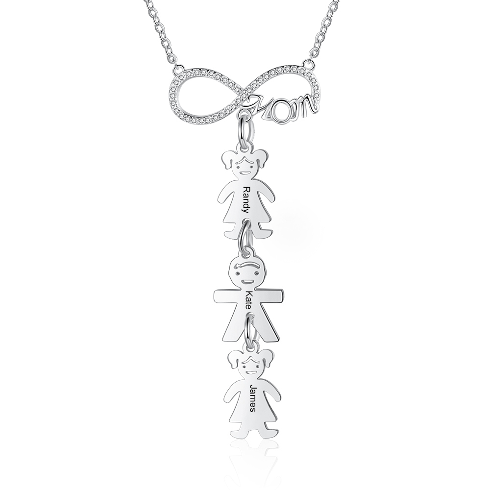 Infinity Necklace with 3 Kid Charms Engraved Names Mom Necklace