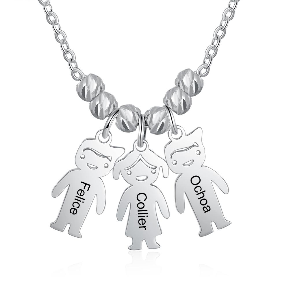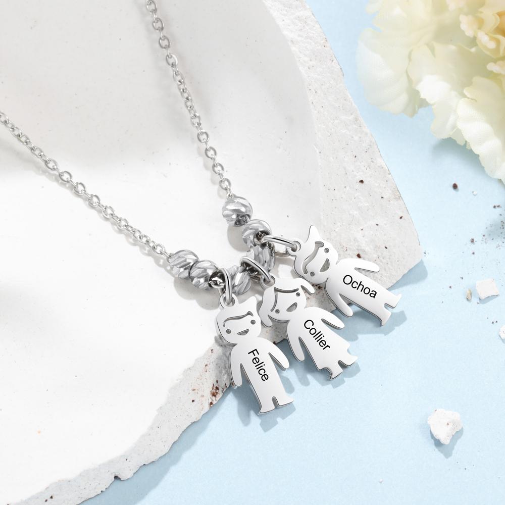 Mother Necklace with 3 Children Charms Engraved 3 Kid's Names