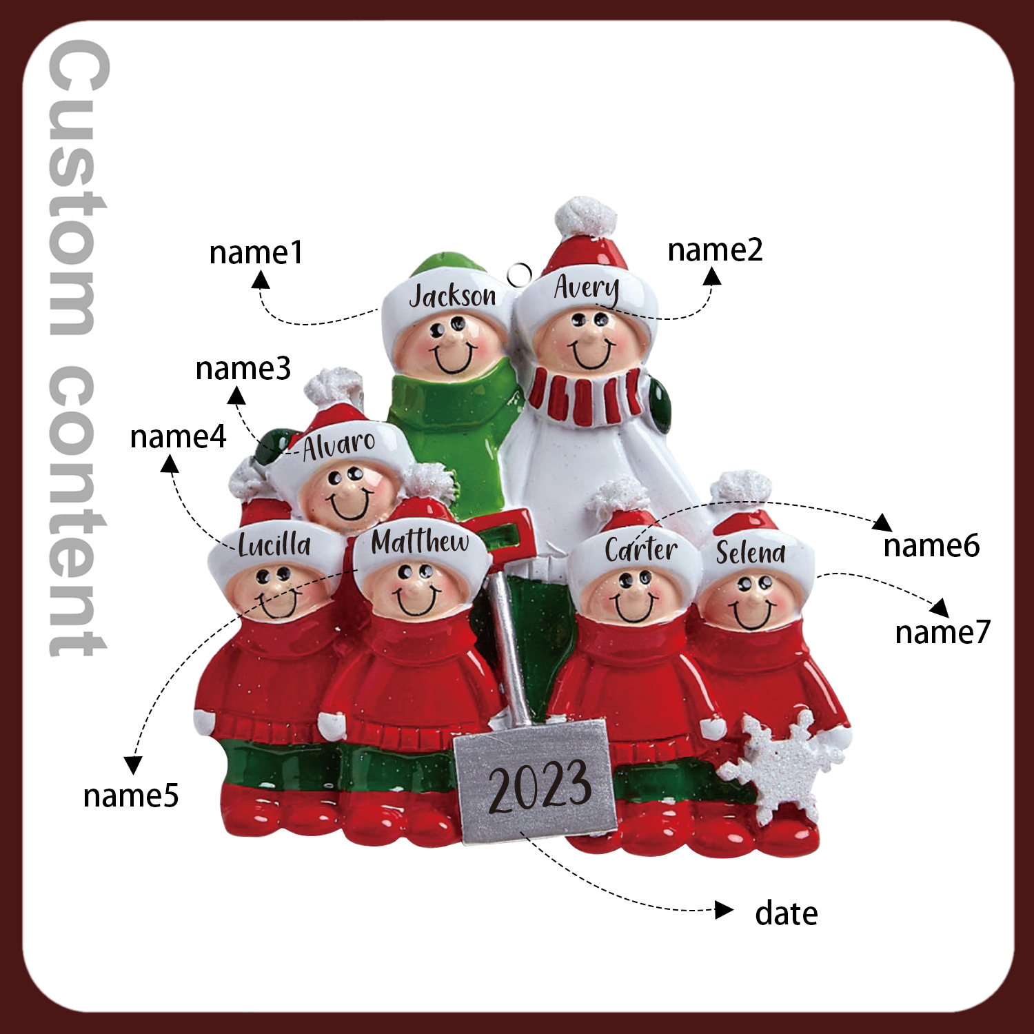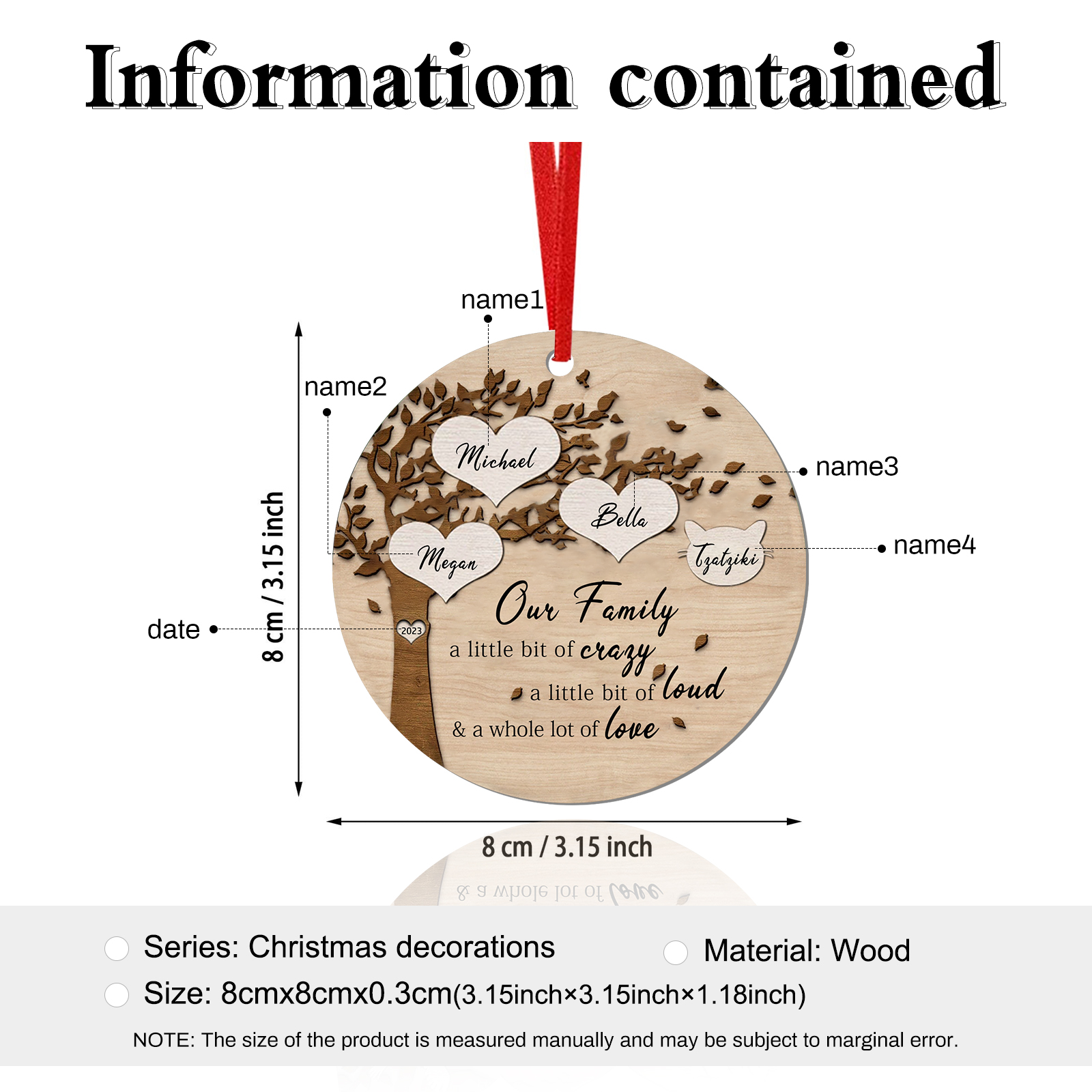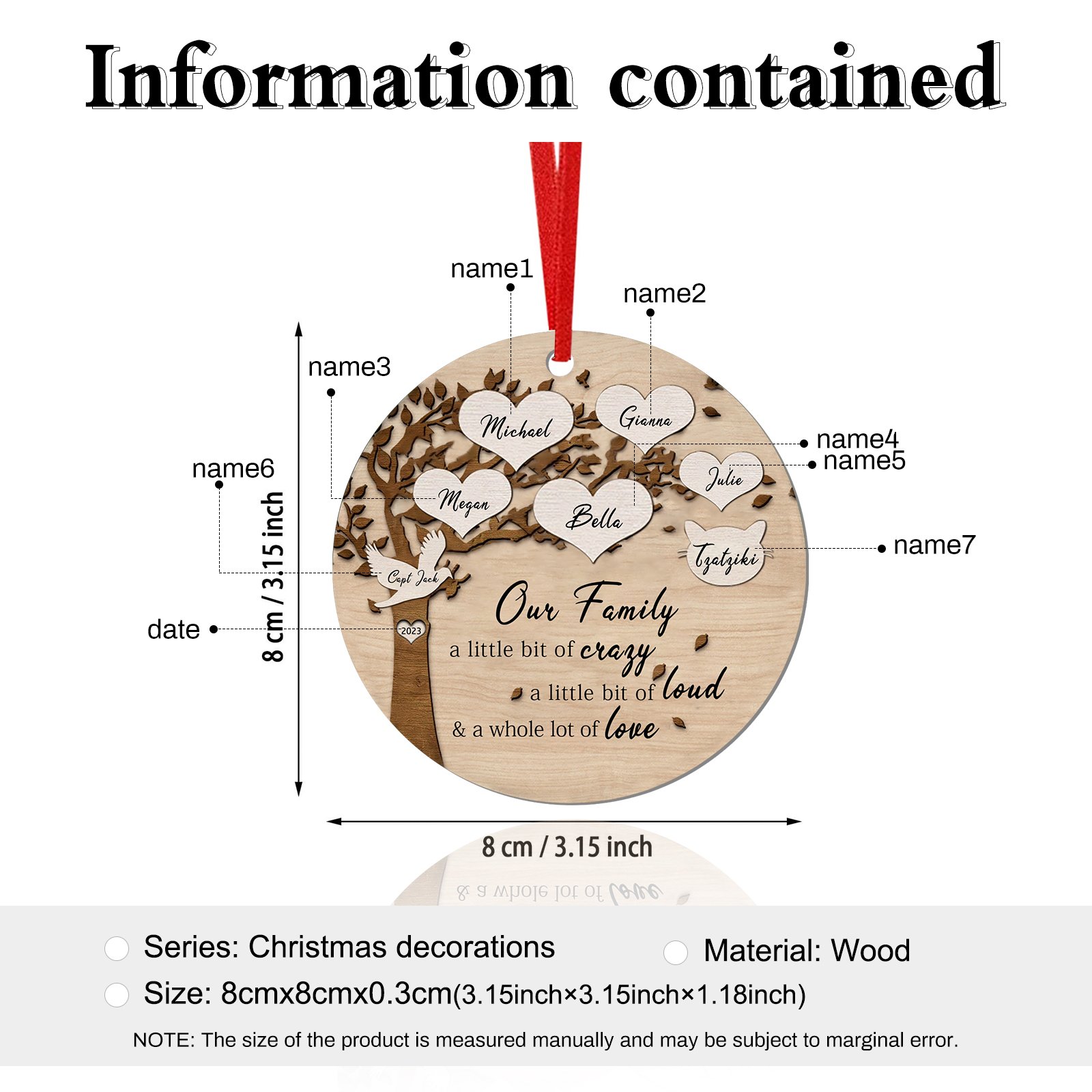 8 Names - Personalized Wooden Christmas Ornaments Customized Text & Date Xmas Decor Gifts for Family Friends