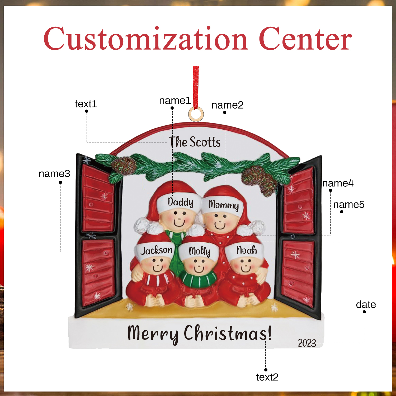 5 Names - Personalized Acrylic Christmas Ornaments Customized Text & Name Xmas Pendant Gifts for Family Friends