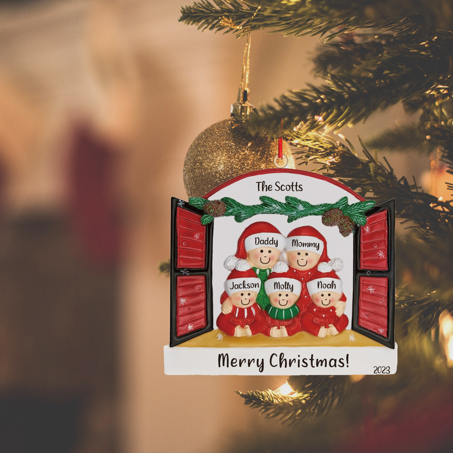 5 Names - Personalized Christmas Ornaments Custom Text Wooden Xmas Ornaments Gifts for Family Friends