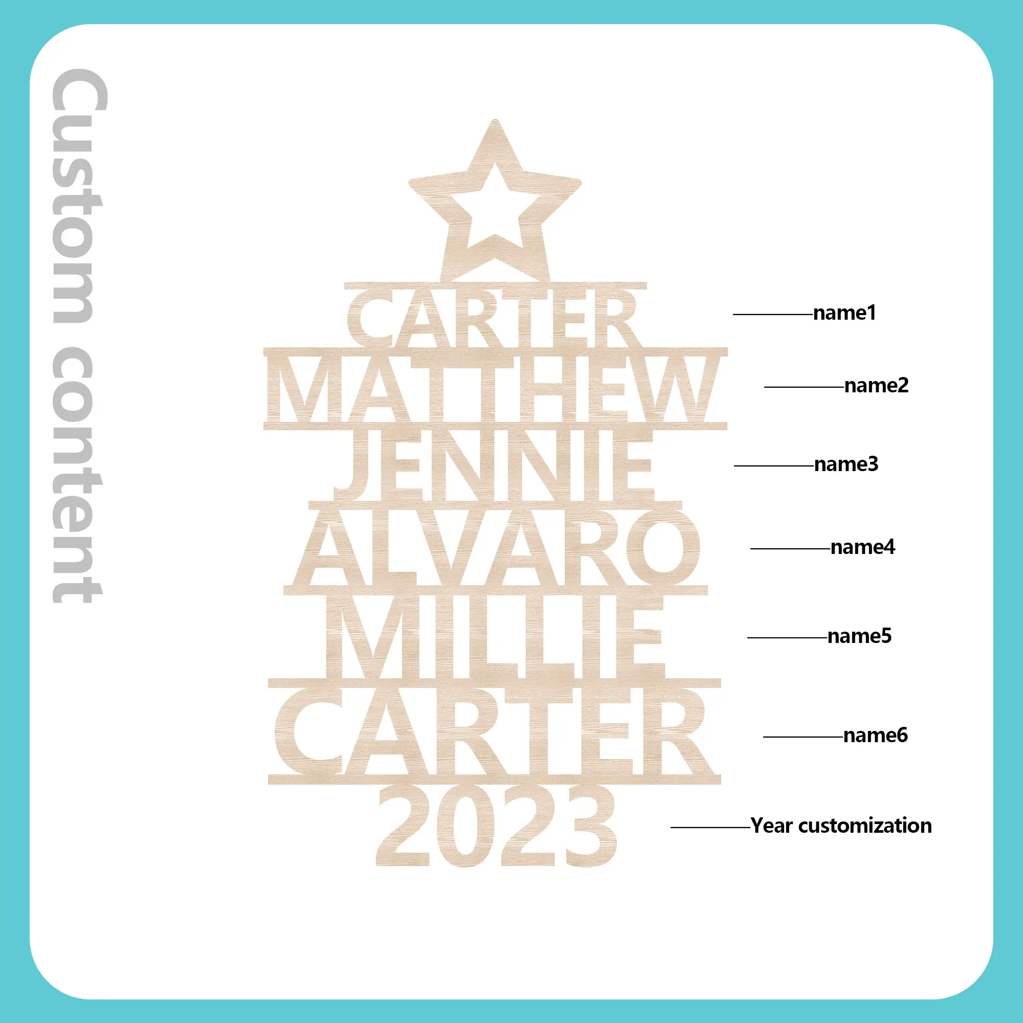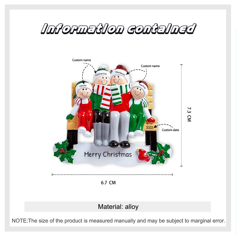 5 Names - Personalized Wooden Christmas Ornaments Customized Text & Date Xmas Decor Gifts for Family Friends