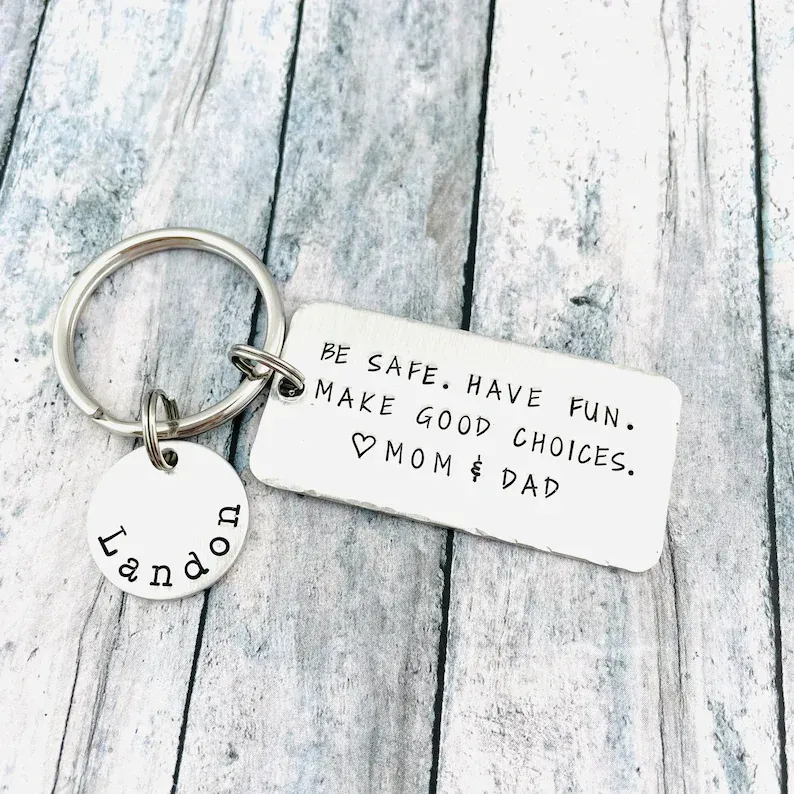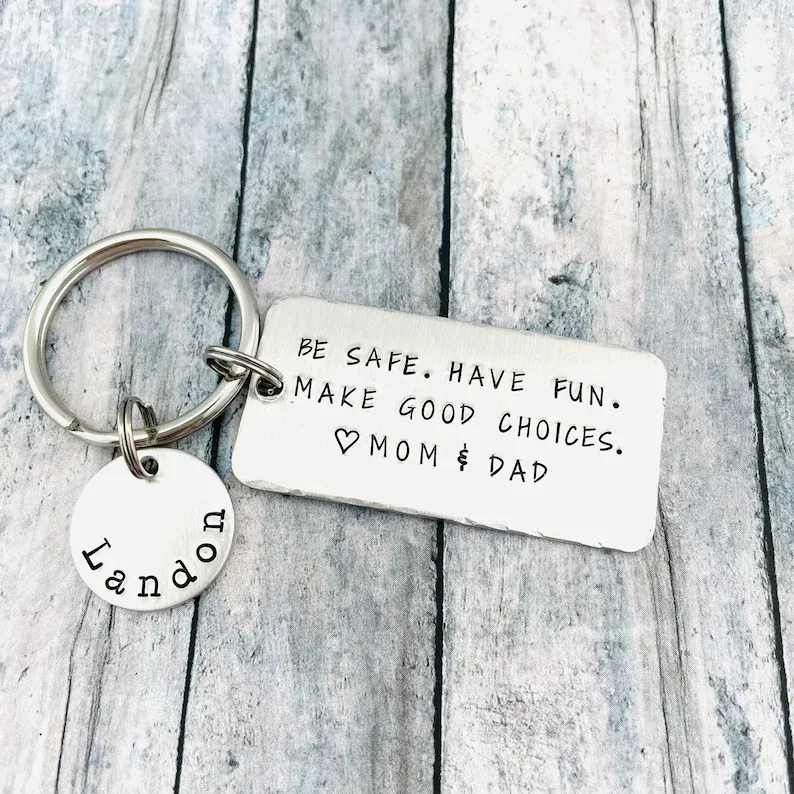 The keychain engraved with "Be safe. Have fun. Make good choices." is the gift idea for your kids for their Birthday, Graduation, Anniversary, Christmas, Thanksgiving, etc! This keychain will be with them side by side, wherever they go so they can feel that you are always there for them. It is useful and practical but also is able to convey the meaning of your love.