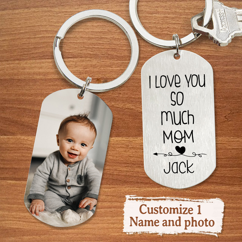 I Love You Mom Personalized Name & Photo Keychain For Mother
