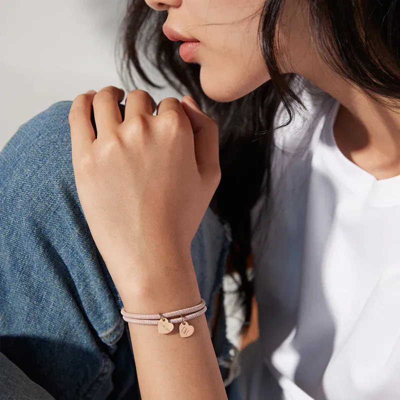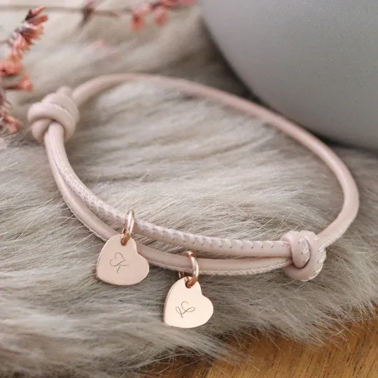 Leather Bracelet Personalized Heart Bracelet Engraving Adjustable Leather Bracelet For Her