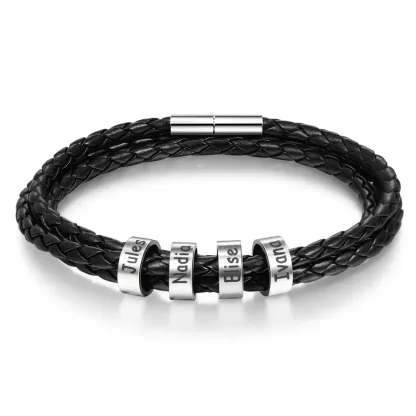 Men Braided Leather Bracelets with 4 Beads Bracelet Gifts for Him