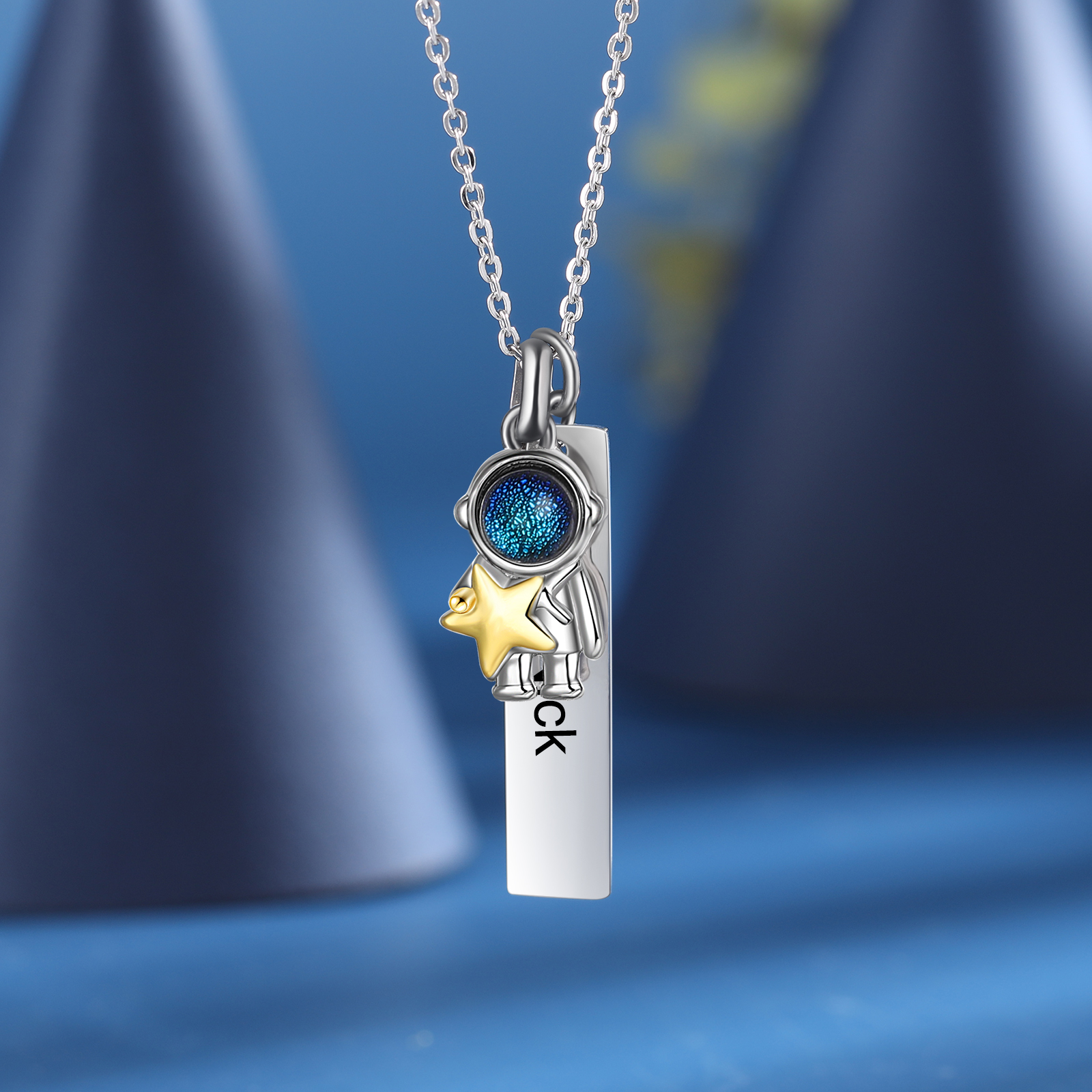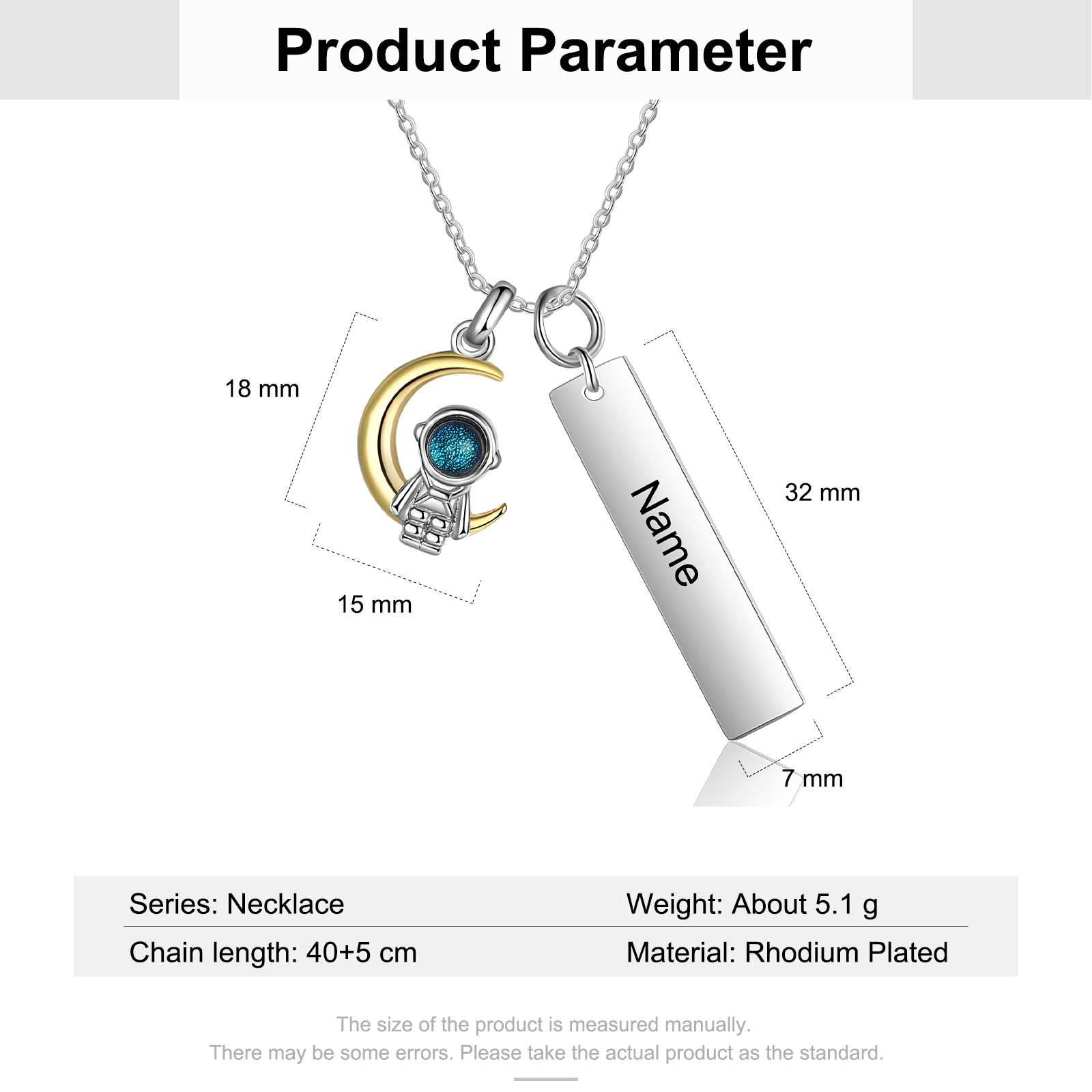 Personalized Couple Necklace with Astronaut with Moon Star Pendant Custom Name Necklace