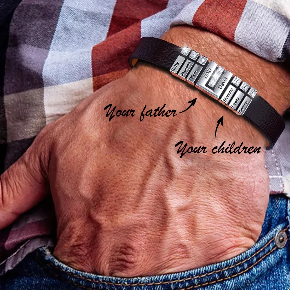 Personalized Men Leather Bracelet Custom 4 Names Family Bracelet for Him