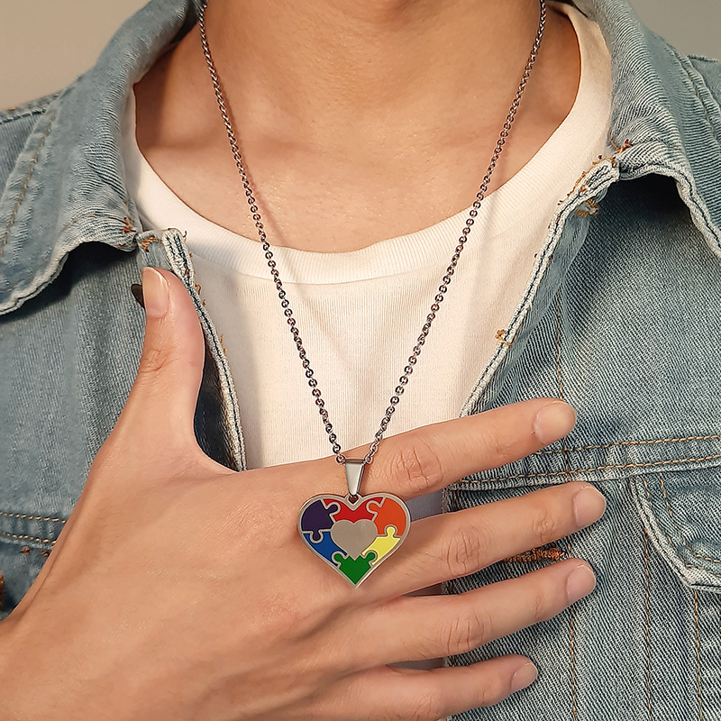 Rainbow Heart Puzzle Necklace LGBT Pride Gifts