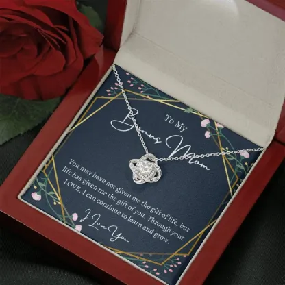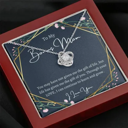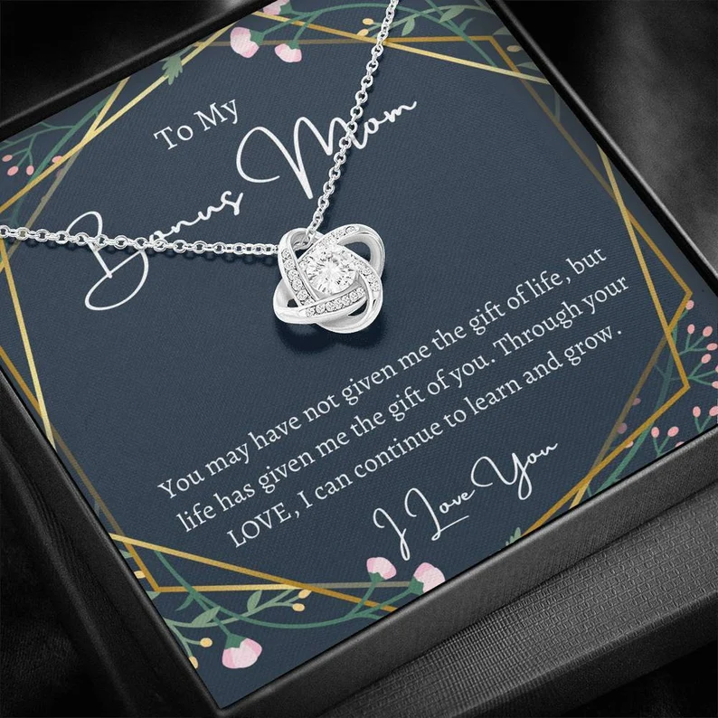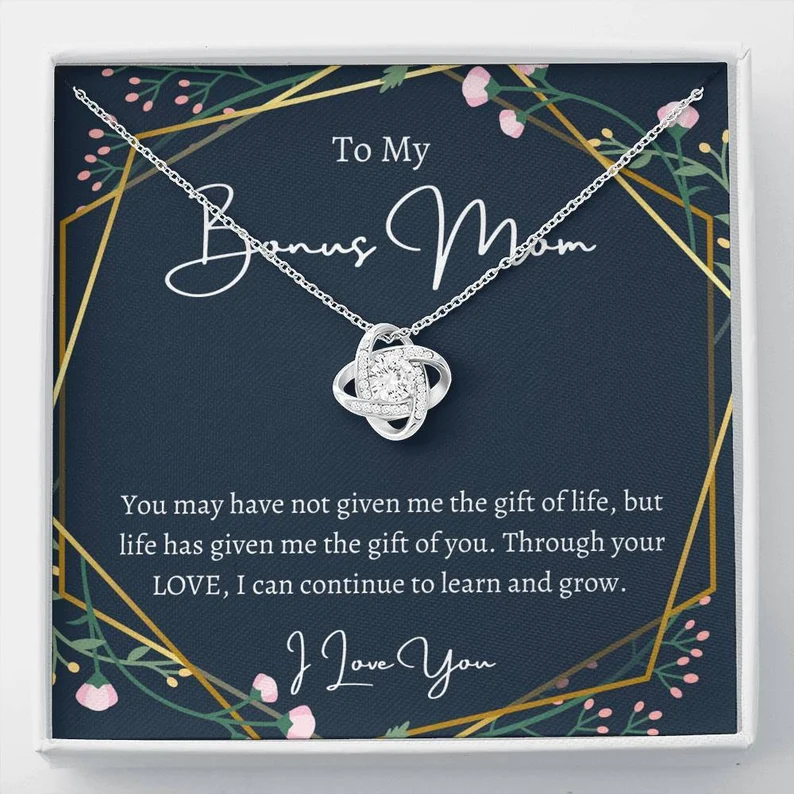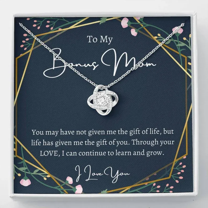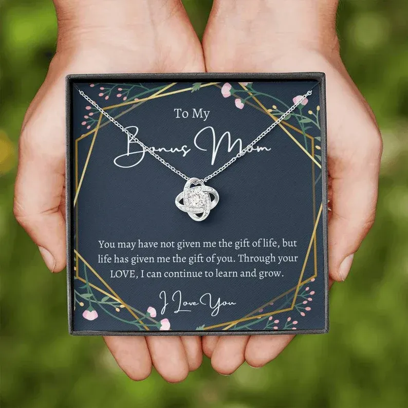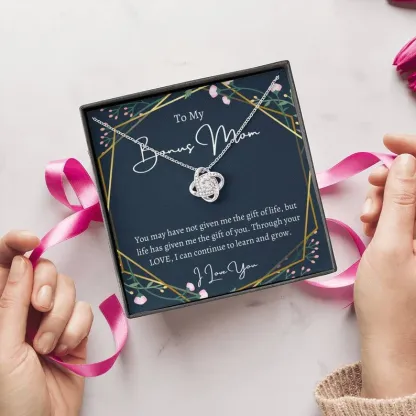 To My Bonus Mom Love Knot Necklace Gift Set" I LOVE YOU"