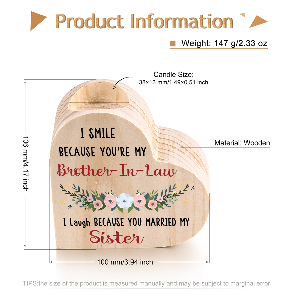 To My Brother-in-law Heart Candle Holder Wooden Candlesticks - I Smile Because You're My Brother-In-Law