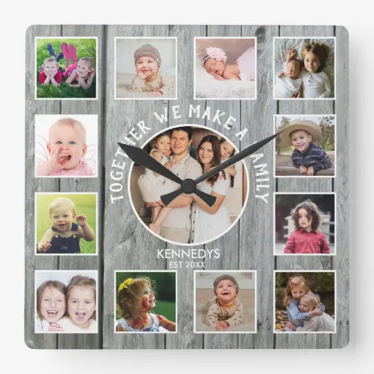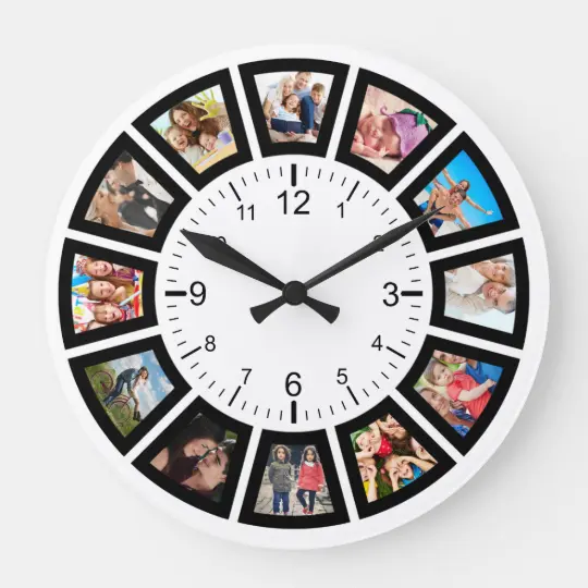 Personalized Photo Wall Clock Custom 12 Photos Family Wooden Clock