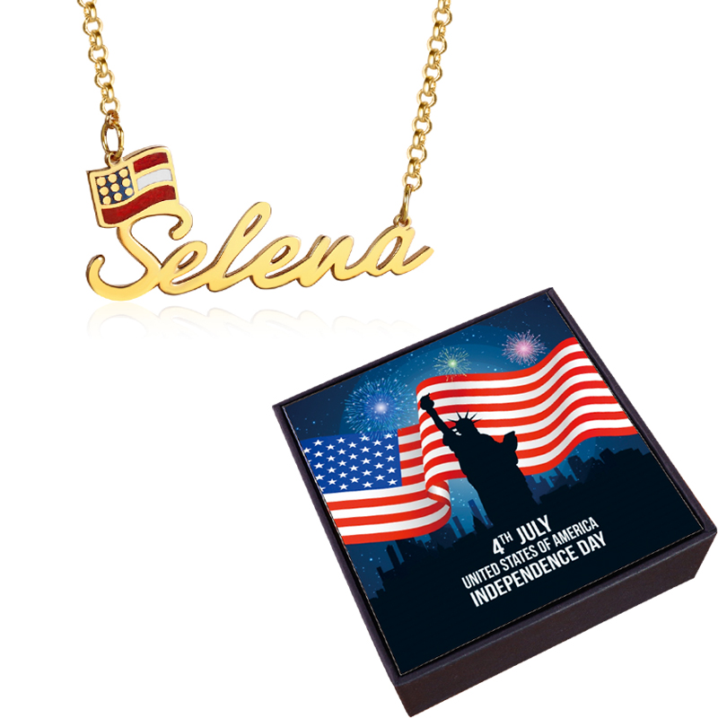 Personalized Name Necklace with America Flag Necklace 4th of July Gifts