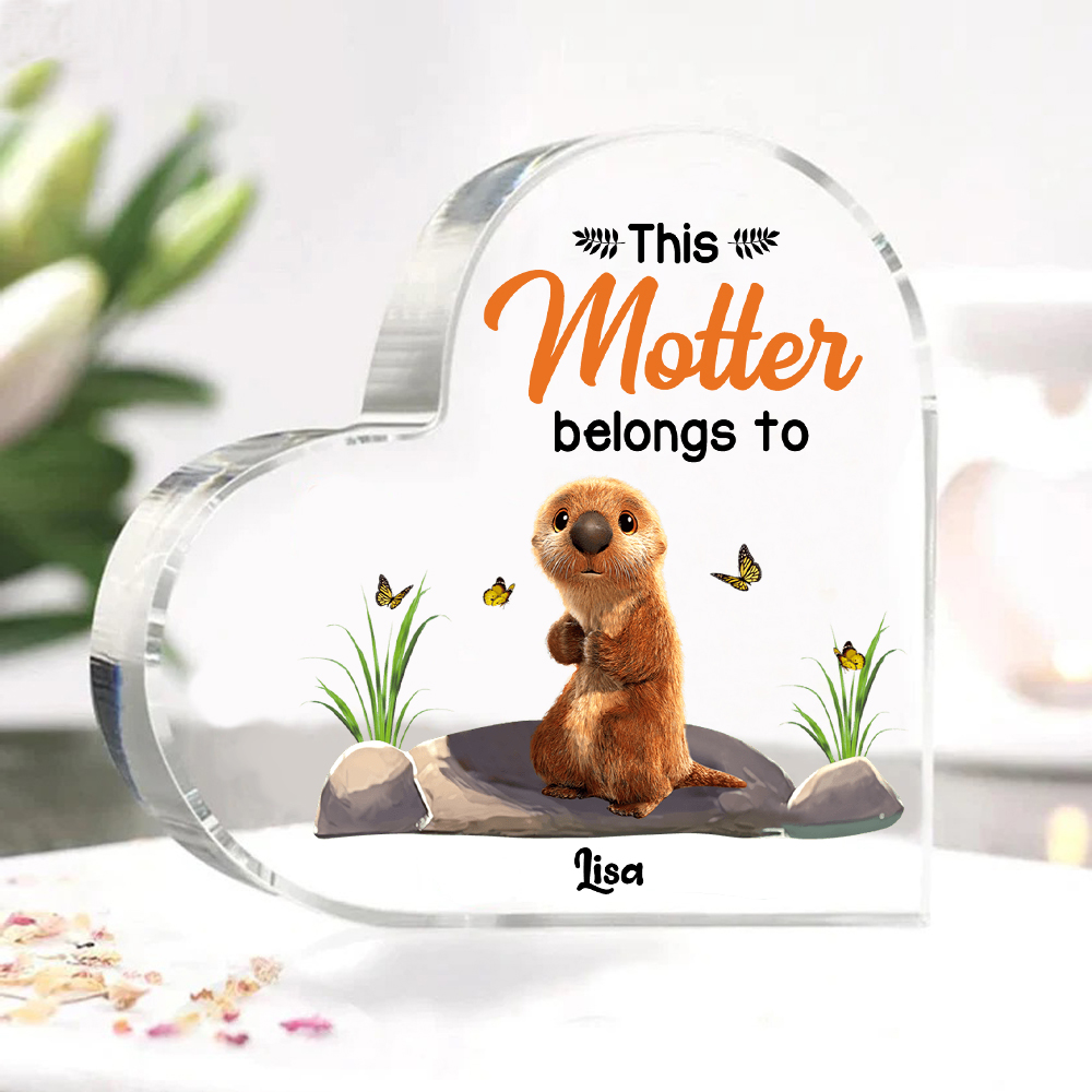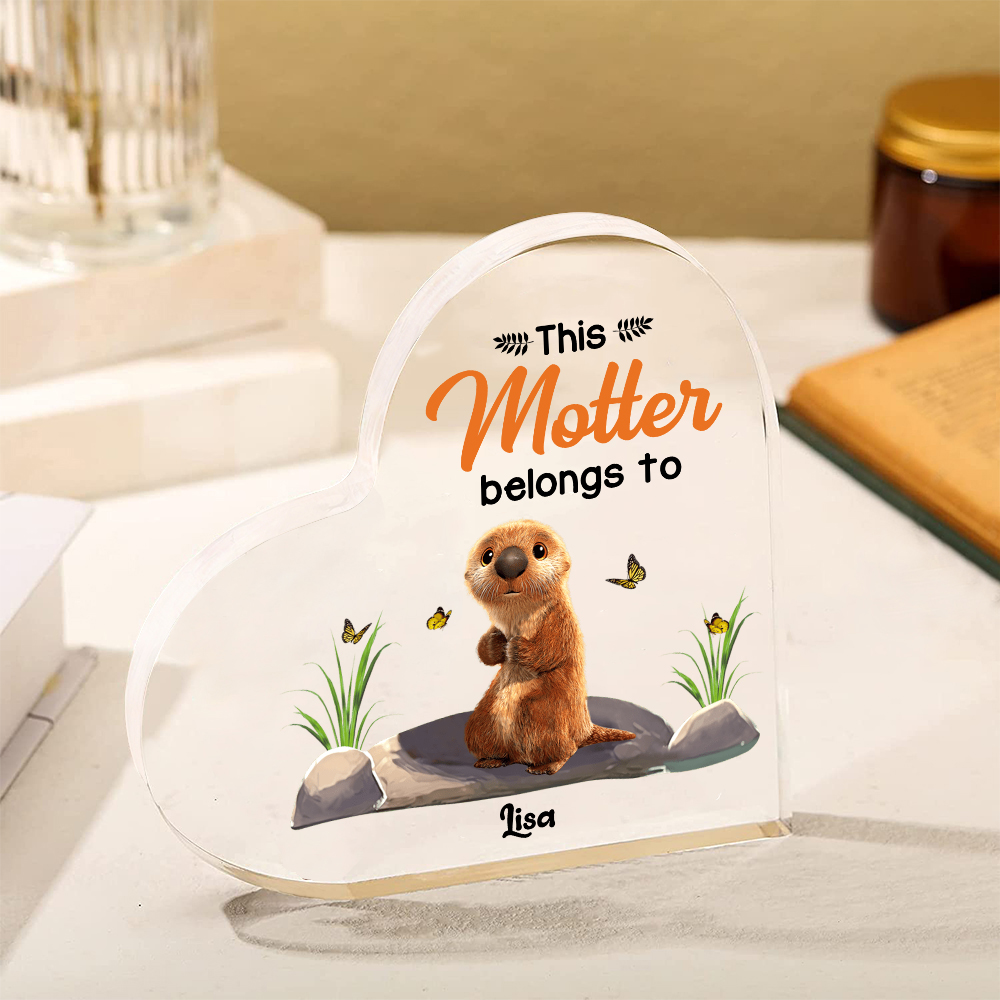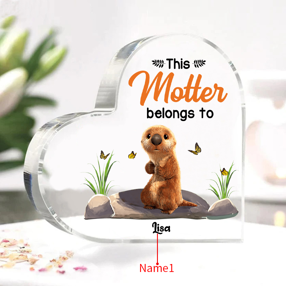 1 Name - Personalized Mom Acrylic Heart Keepsake Otters Family "This Motter Belongs To" Ornaments Gifts for Mother