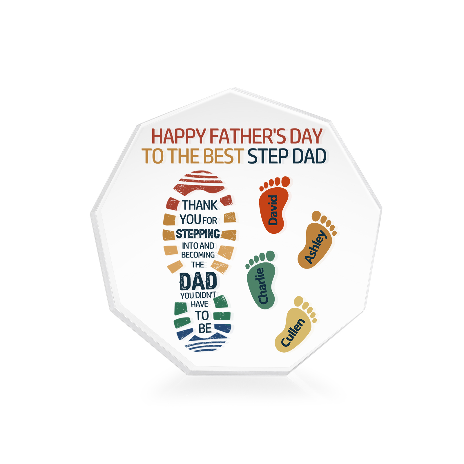 Personalized Acrylic Nine-Sided Shape Plaque Custom 4 Names Dad Shoe Baby Feet Ornaments - Happy Father's Day To The Best Step Dad