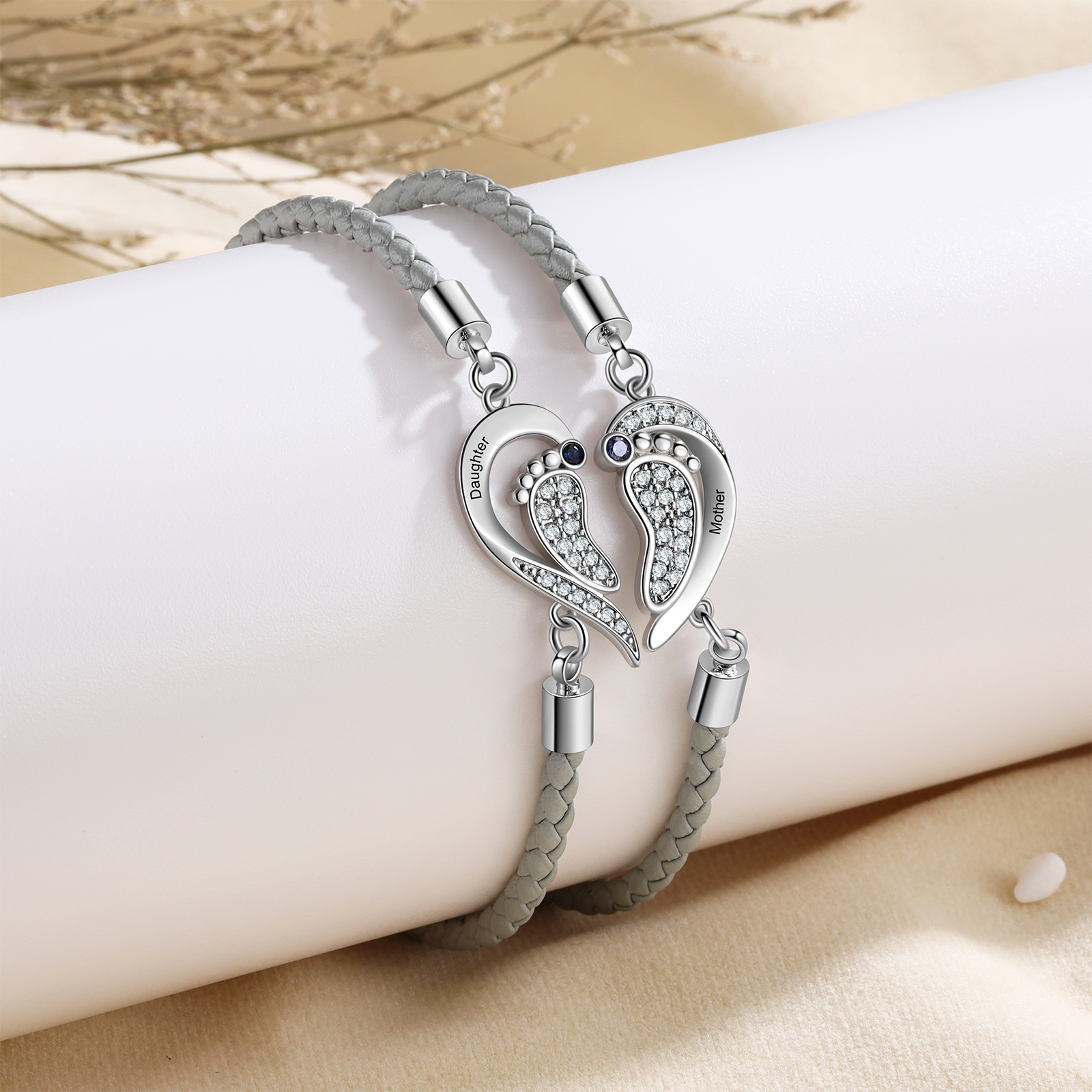 Personalized Heart Baby Feet Bracelet with Birthstone for Mom
