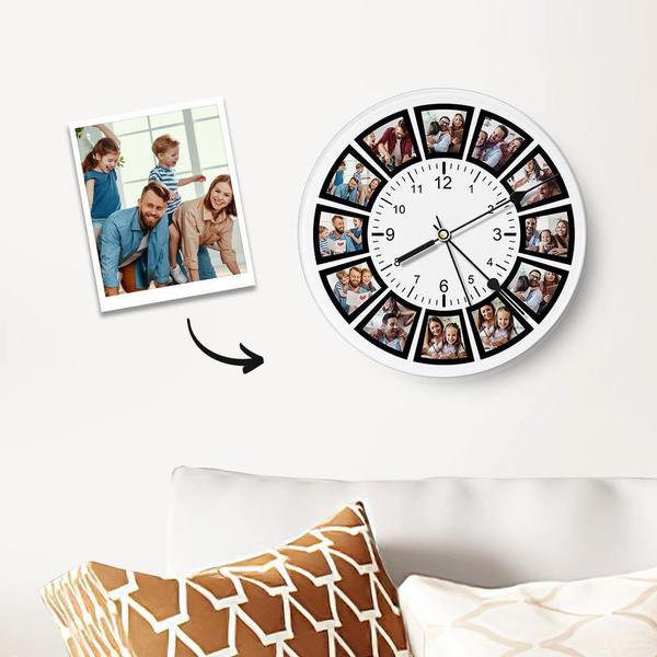 Personalized Photo Wall Clock Custom 12 Photos Family Wooden Clock