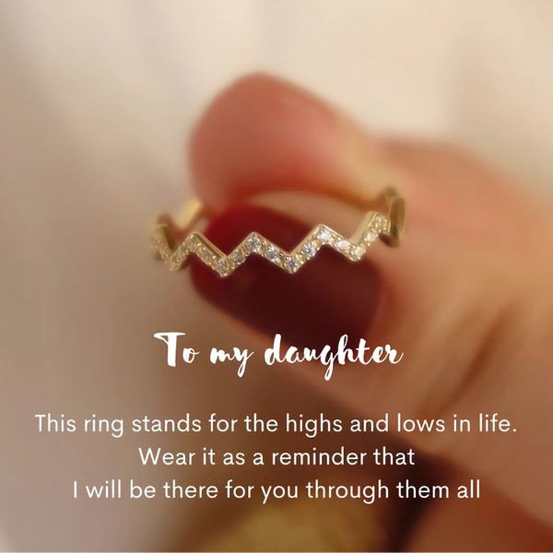 This zigzag ring beautifully symbolizes the highs and lows in life. With a heartwarming message card included, it serves as a reminder for a beloved daughter you will always be there for her. The perfect meaningful gift for New Year, Valentine's Day, birthdays, and many more occasions.