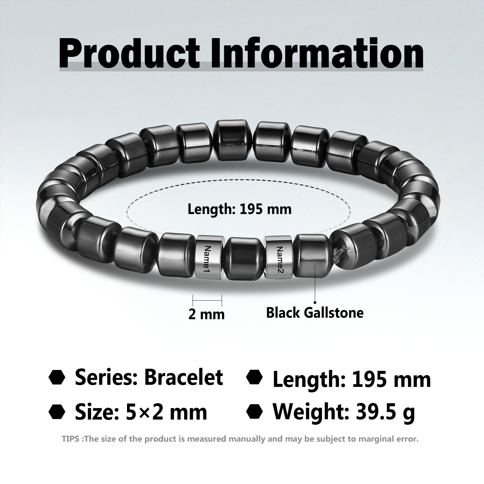 Personalized Black Gallstone Bracelet Engraves 2 Names Beads Warp Bracelet