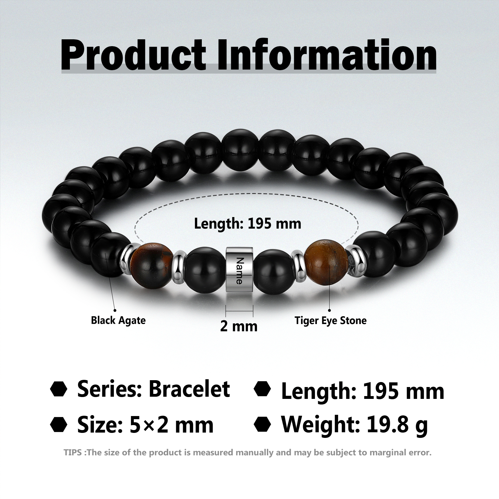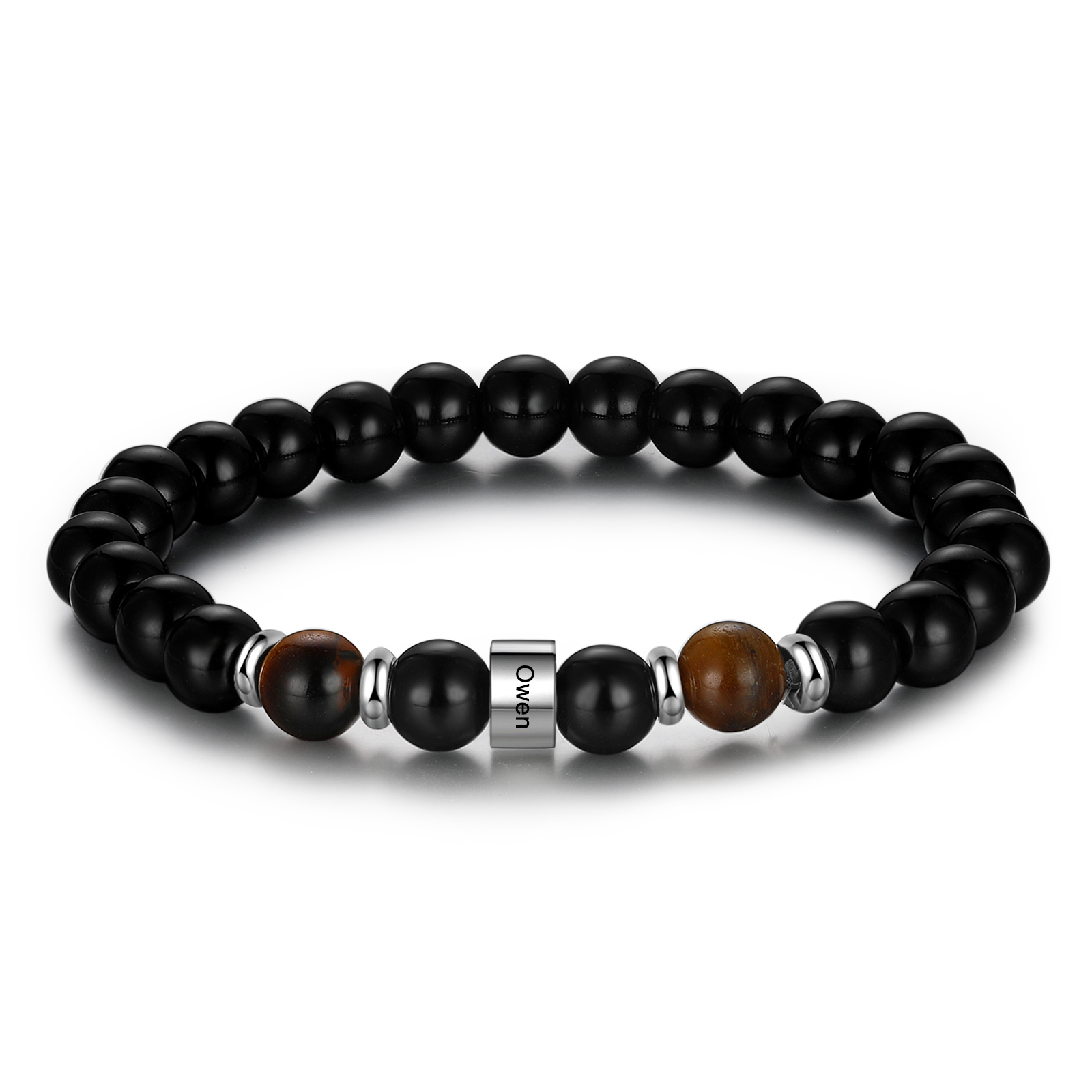 Personalized Men Bracelet Engraved 1 Name Black Onyx Beaded Bracelet
