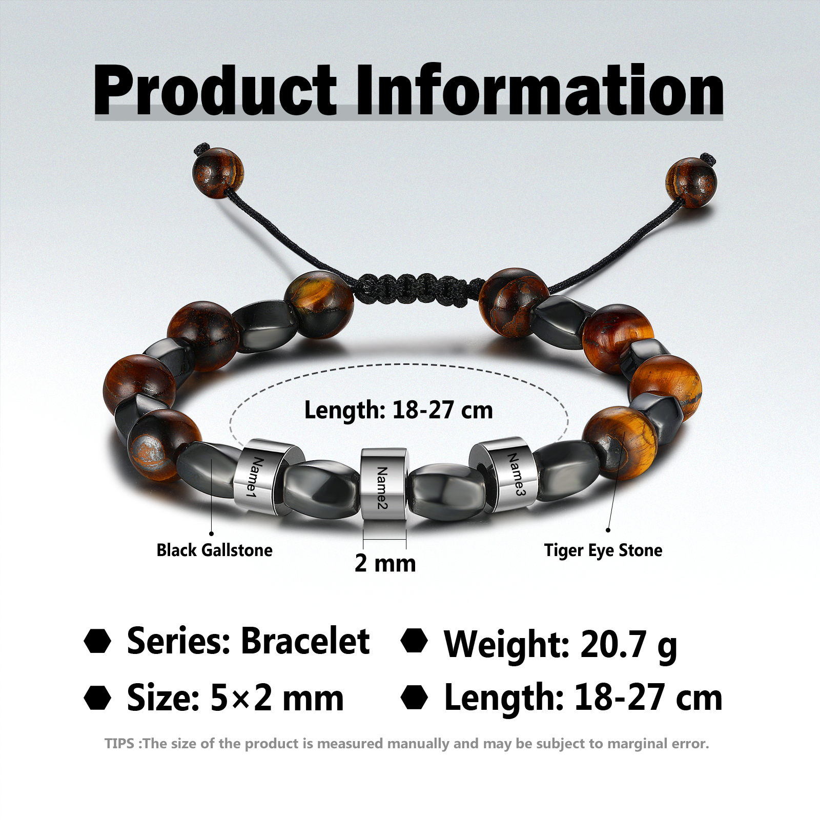 Personalized Tiger Eye Bracelet with 4 Names Beaded Men Bracelet