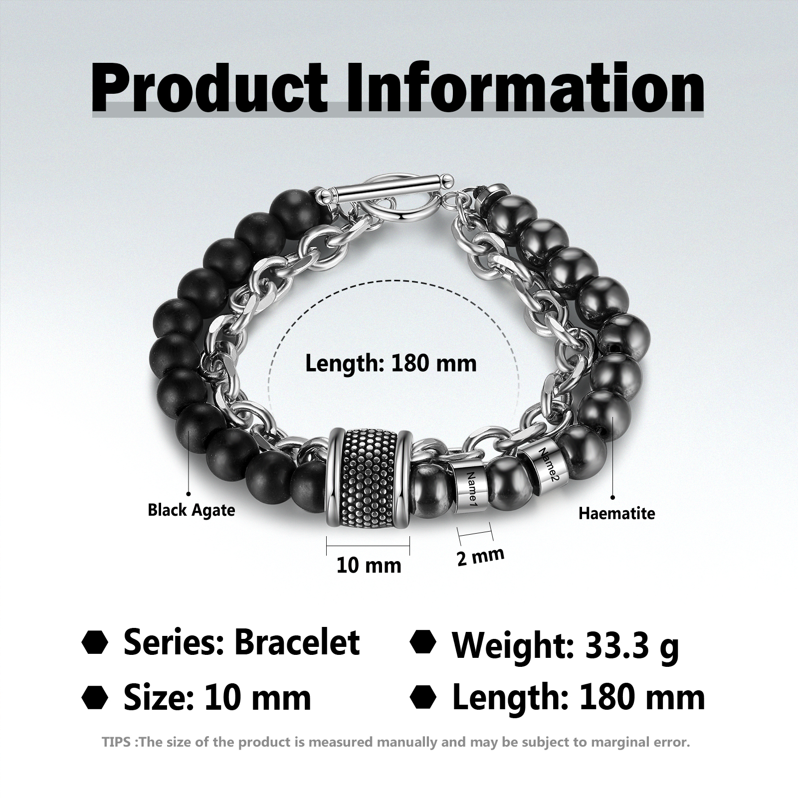 Black Onyx Men Bead Bracelet Personalized 2 Names Beaded Warp Bracelet Gift For Dad