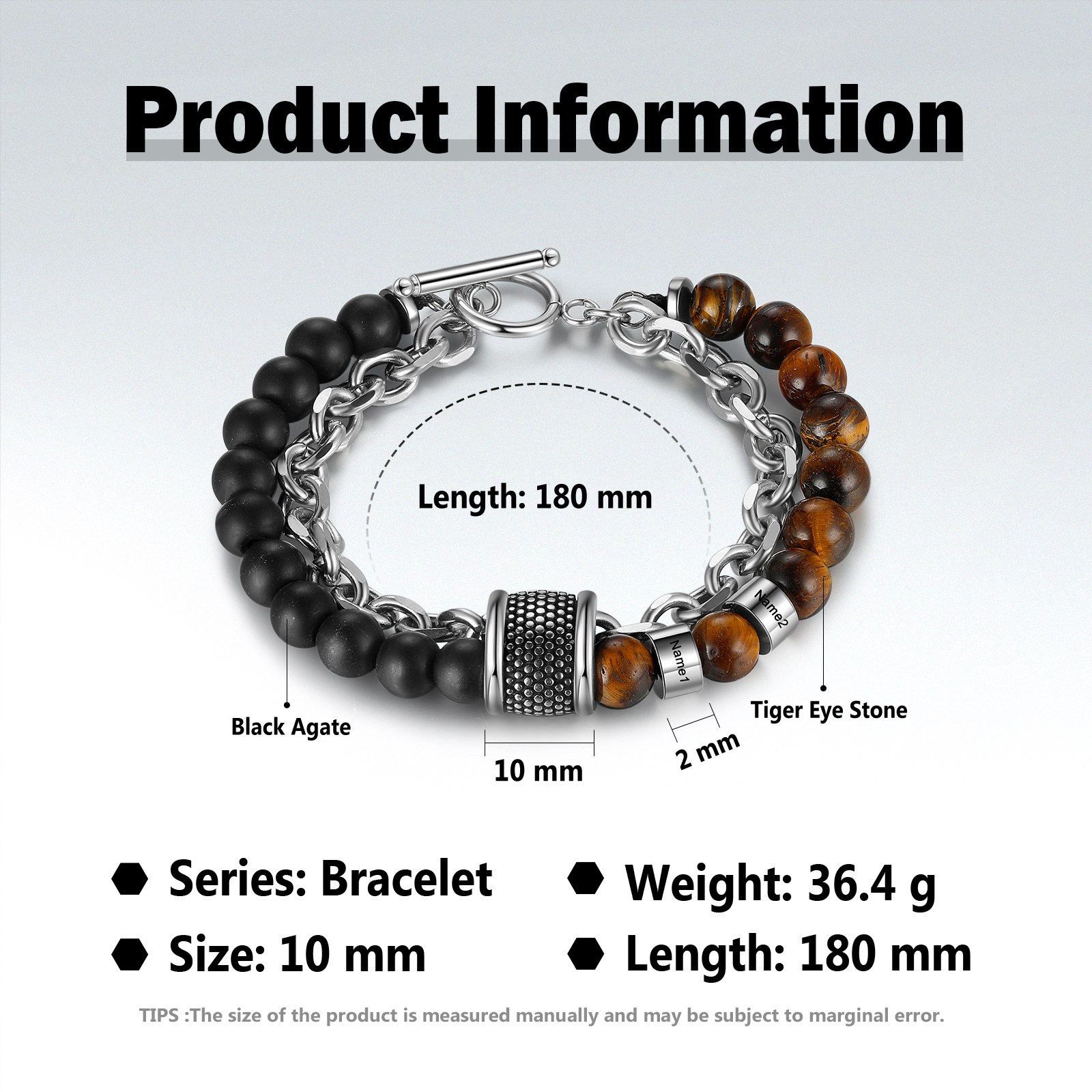 Tiger's Eye Men Bead Bracelet Personalized 2 Names Beaded Warp Bracelet Gift For Dad