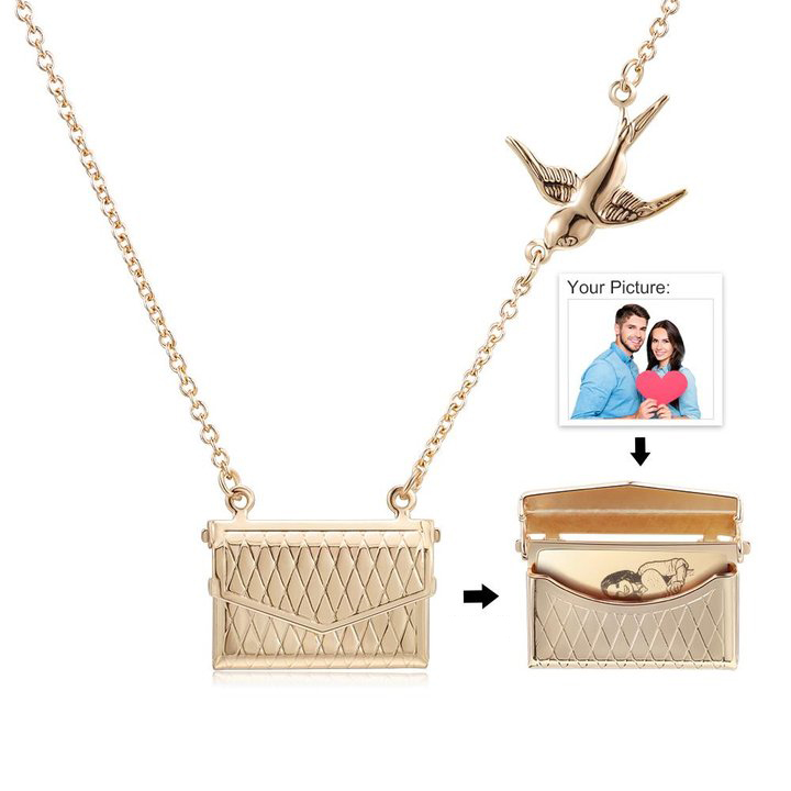Personalized Photo Necklace customized Angle Wings Heart Necklace for Her