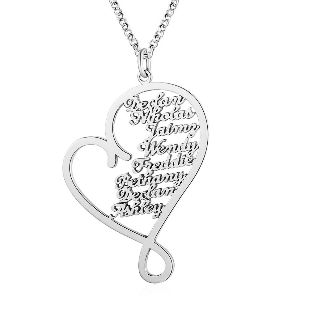 Personalized 8 Names Necklace Heart-Shaped Custom Name Necklaces Gift For Mom