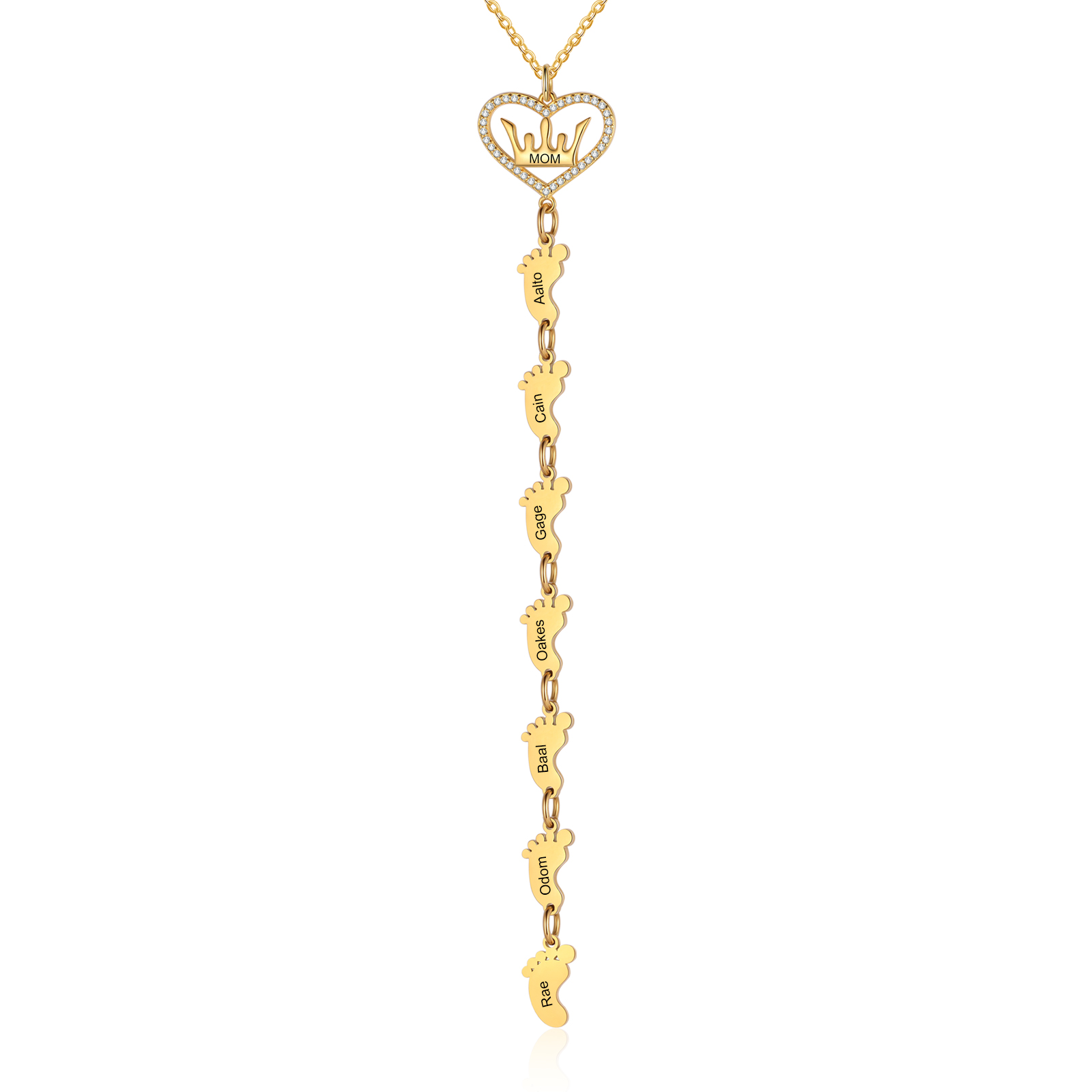 Personalized Mother Crown Necklace with 7 Baby Feet Pendants Engraved 7 Names