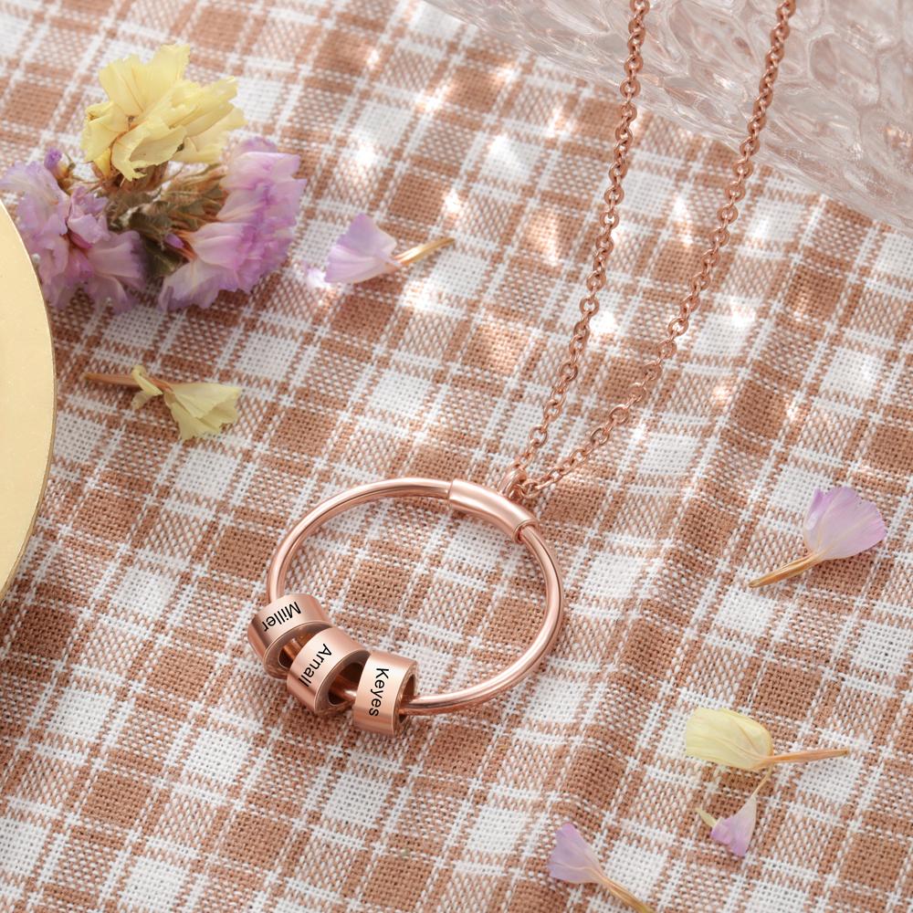 Circle Pendant Necklace With Charms Engraved 5 Names