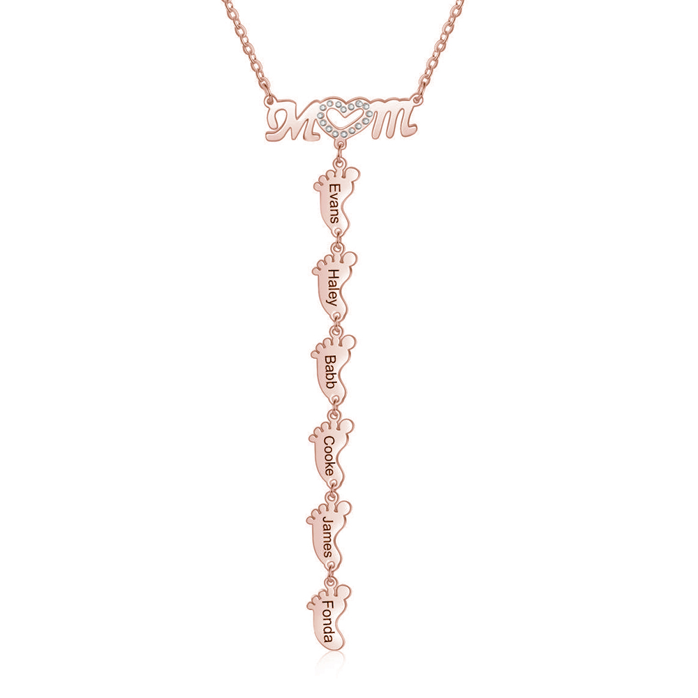 Mother Necklace with 6 Baby Feet Pendants Engraved 6 Names