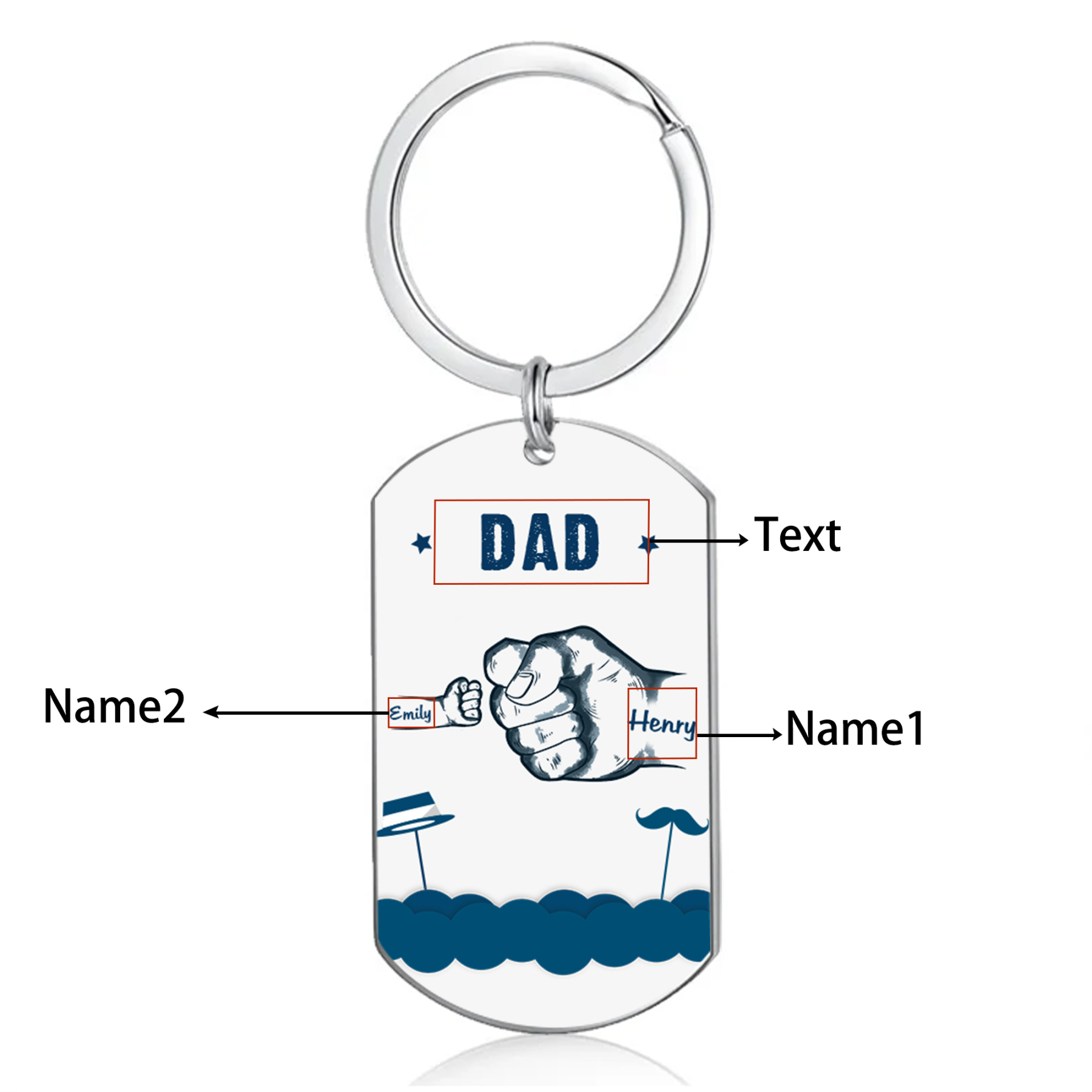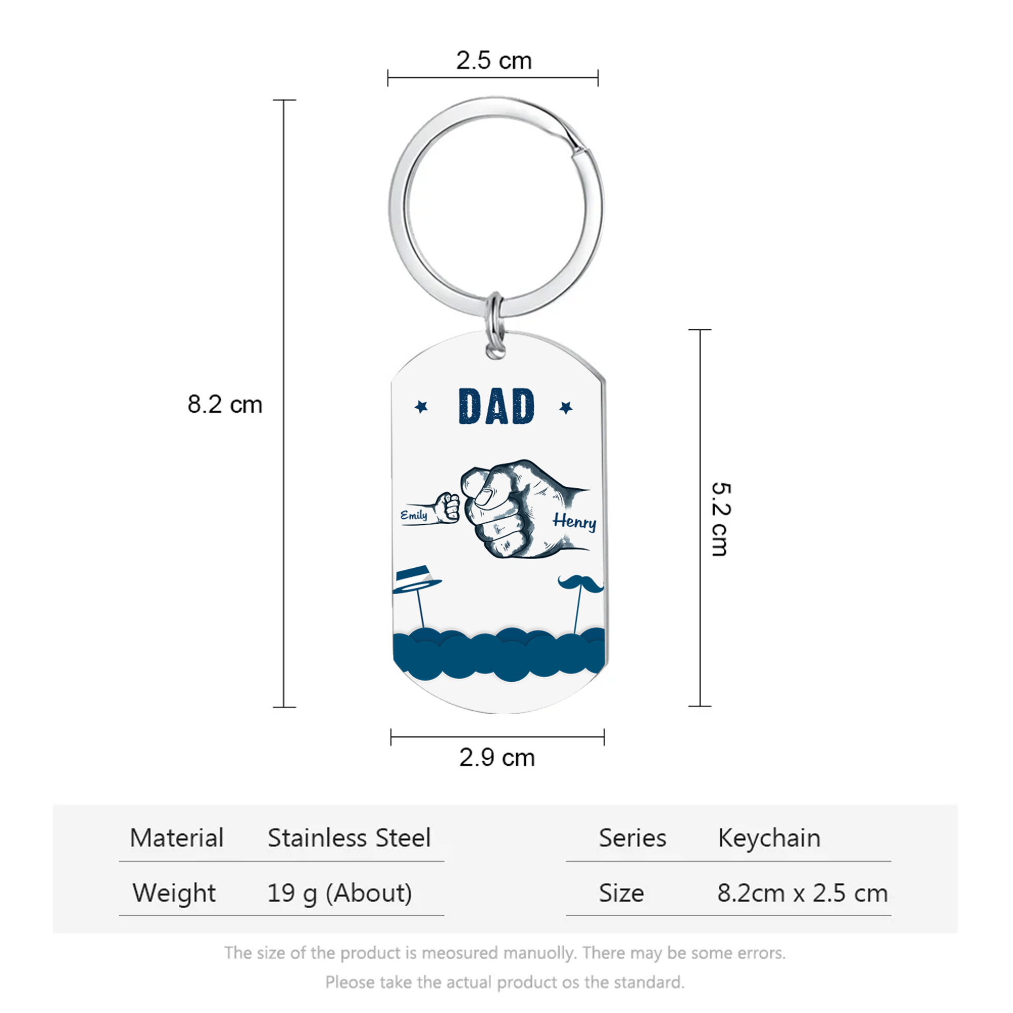 😊 Customize this keychain with the names of your loved ones, making it a unique gift for Dad/Grandpa.