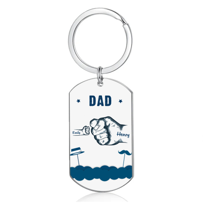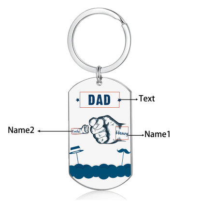 Personalized 2 Names & 1 Text Keychain Custom Fist Bump Keychain Father's Day Gifts for Dad/Grandpa