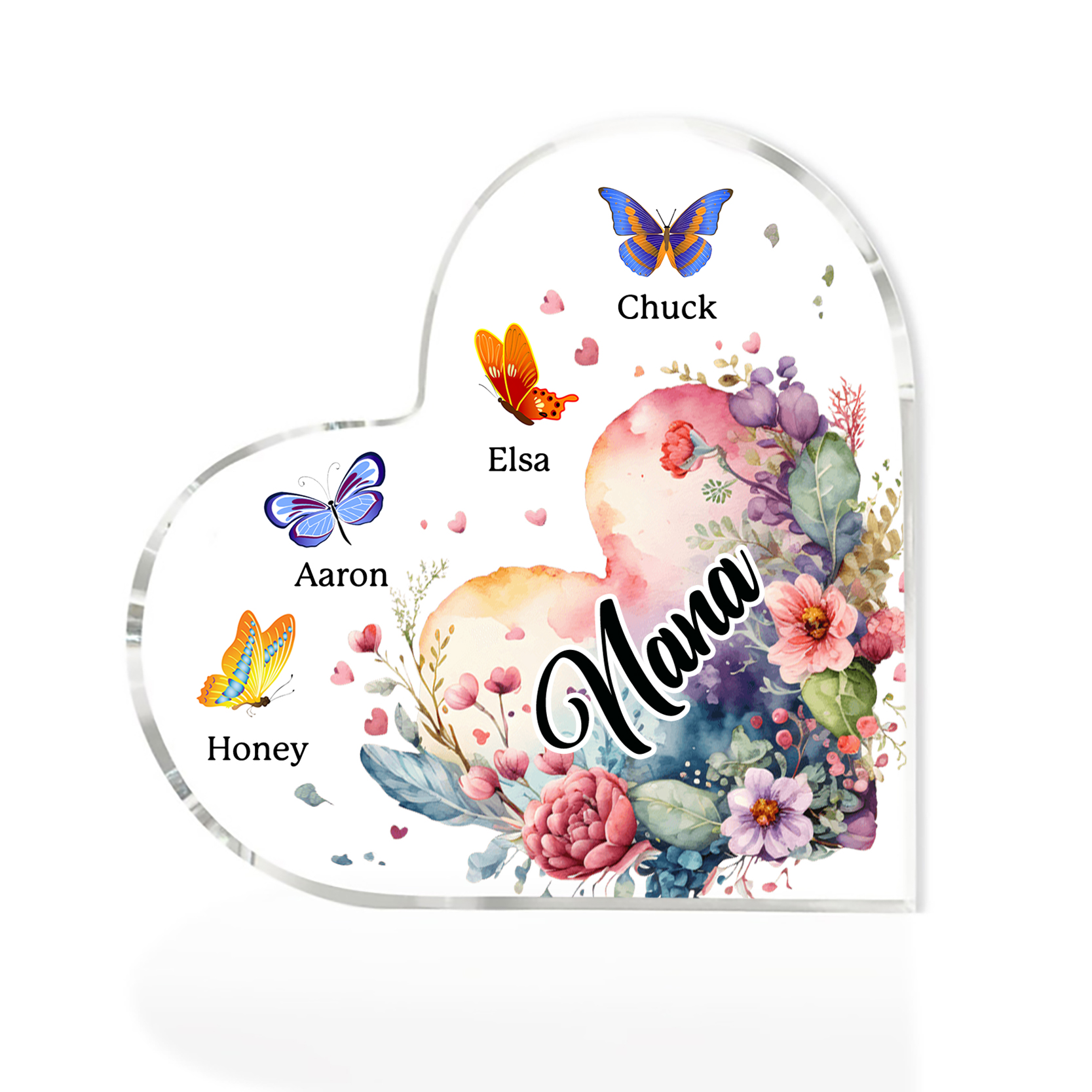 Personalized Acrylic Heart Keepsake Custom 5 Names Flowers Ornament Gifts for Mom/Grandma