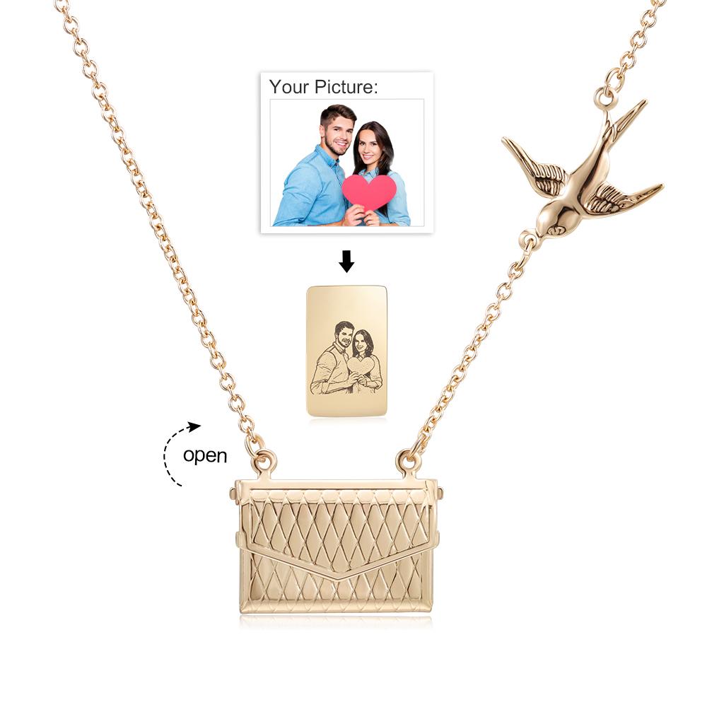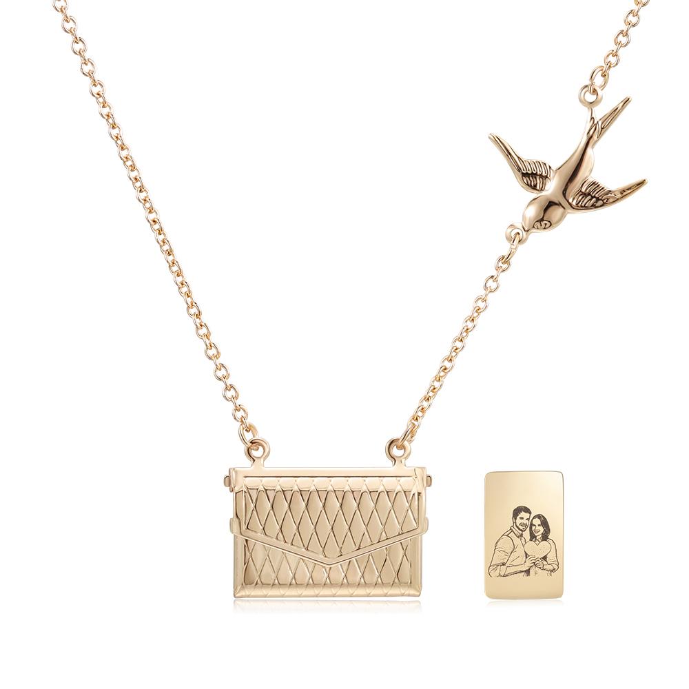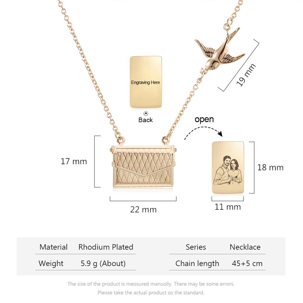 The handbag charm necklace is a perfect gift that can custom a photo on the card and hidden inside the handbag charm. Which opens up just like a real handbag to reveal a card insert for your very own engraved secret photo. This handbag is hidden with a photo card – the ideal gift for the one you love!