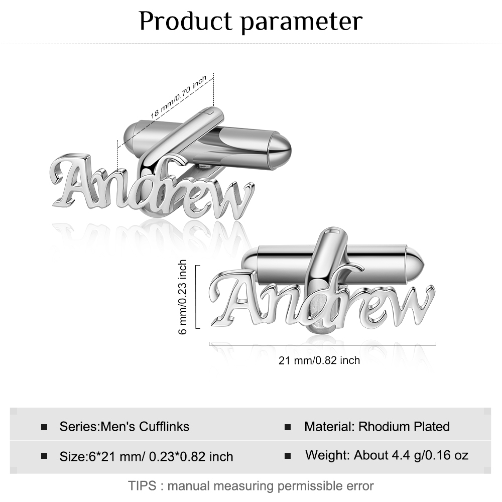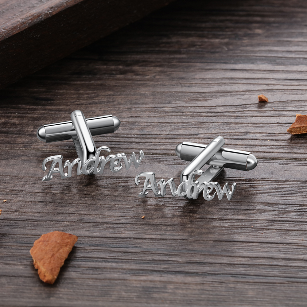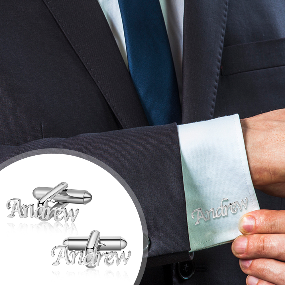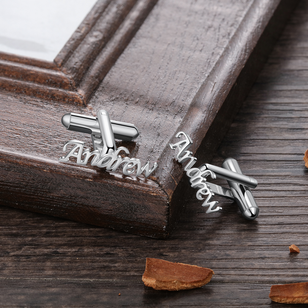 Personalized Name Cufflinks Custom Silver Business Wedding Gift for Men