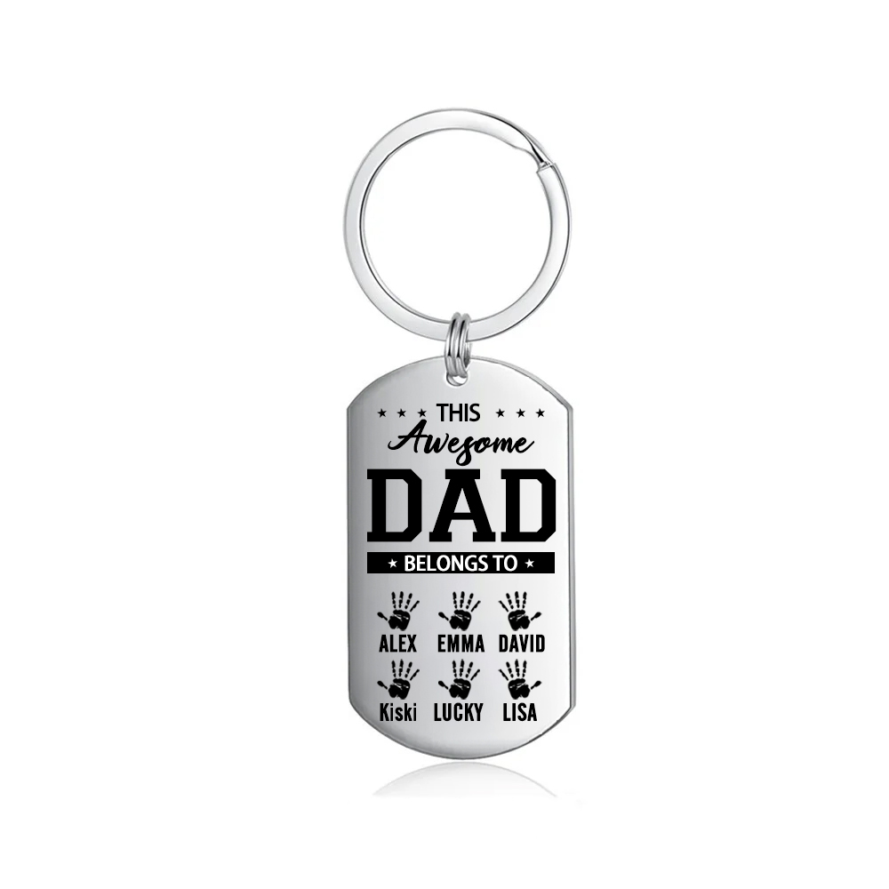 Personalized Family Keychain Custom 6 Handprints Keyring Father's Day Gifts