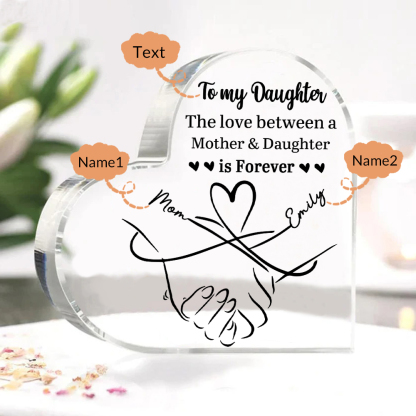 Personalized Text Acrylic Heart Keepsake Custom 2 Names Holding Hands Ornament - The Love Between A Mother & Daughter is Forever