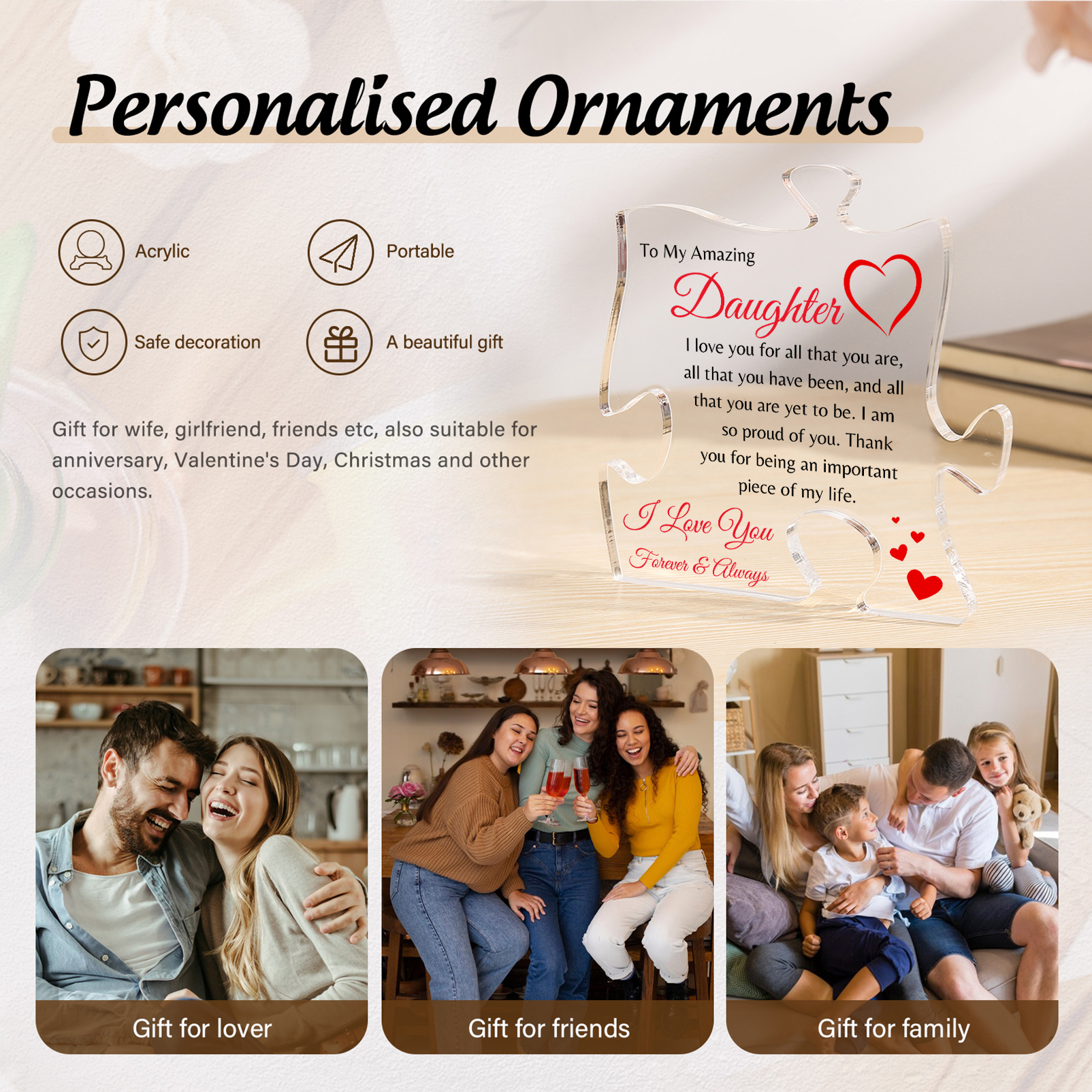 To My Amazing Daughter Acrylic Puzzle Plaque Acrylic Ornament -Thank You For Being An Important Piece Of My Life, I Love You Forever & Always