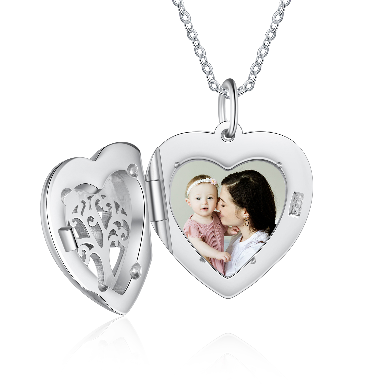 Heart Pendant Photo Locket Necklace Personalized Gift For Mom