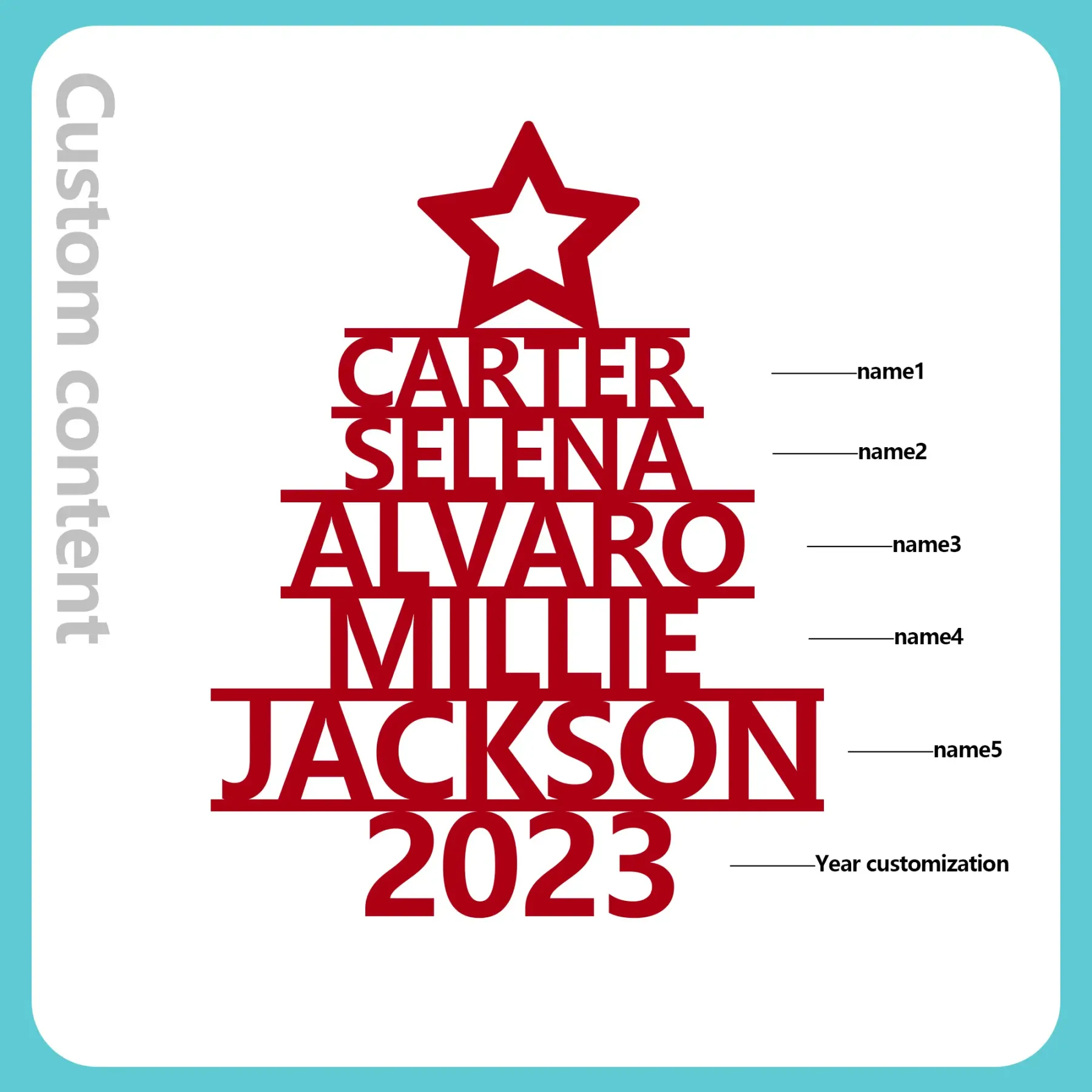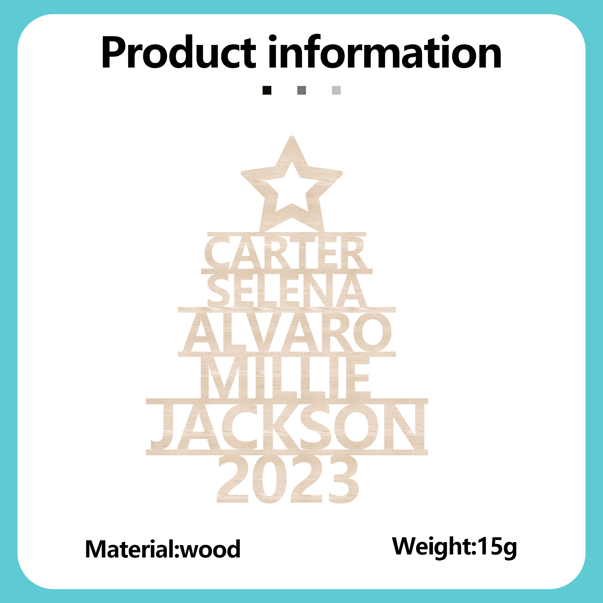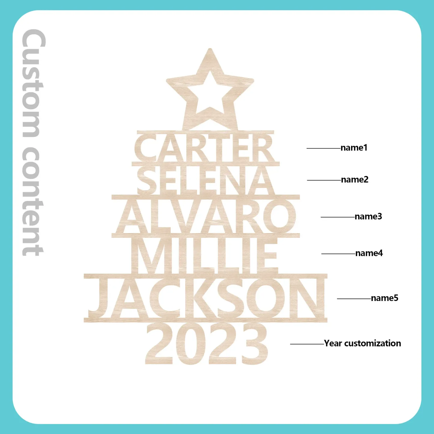 5 Names - Personalized Christmas Tree Ornaments Customized Name Xmas Wooden Decor Gifts for Family Friends