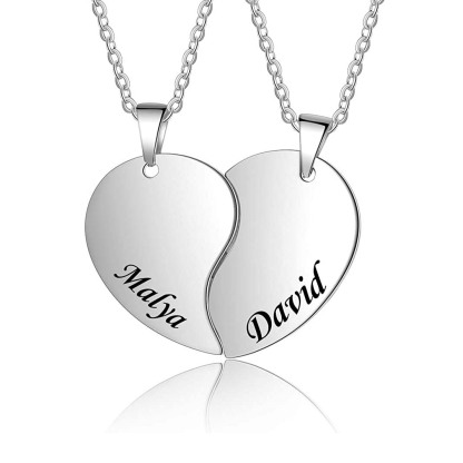Heart Matching Necklace Personalized 2 Names Puzzle Necklace for Couple