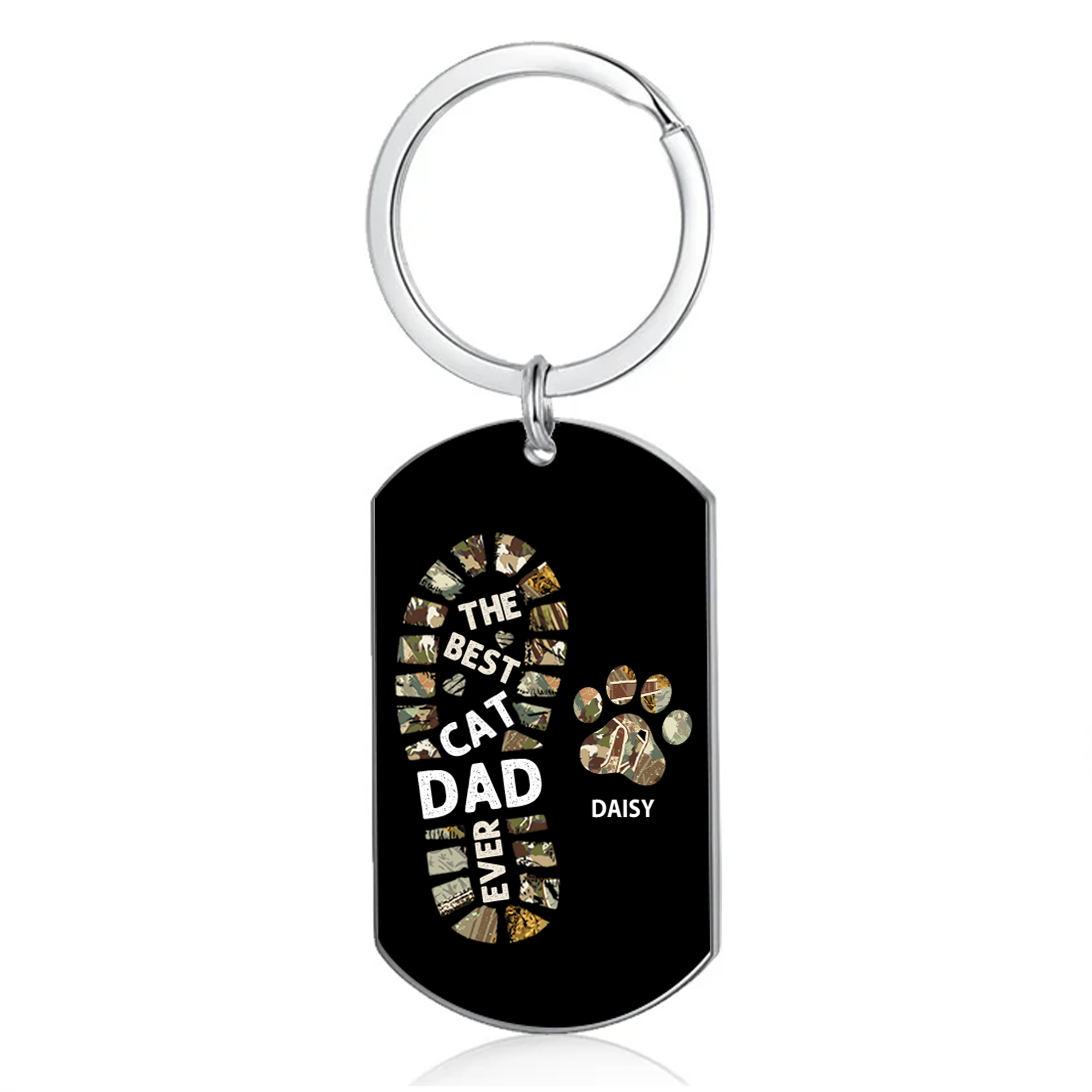 Personalized 1 Name Dad Shoe Cat Paw Keychain Pet Lovers Keychain Gifts for Men - The Best Cat Dad Ever