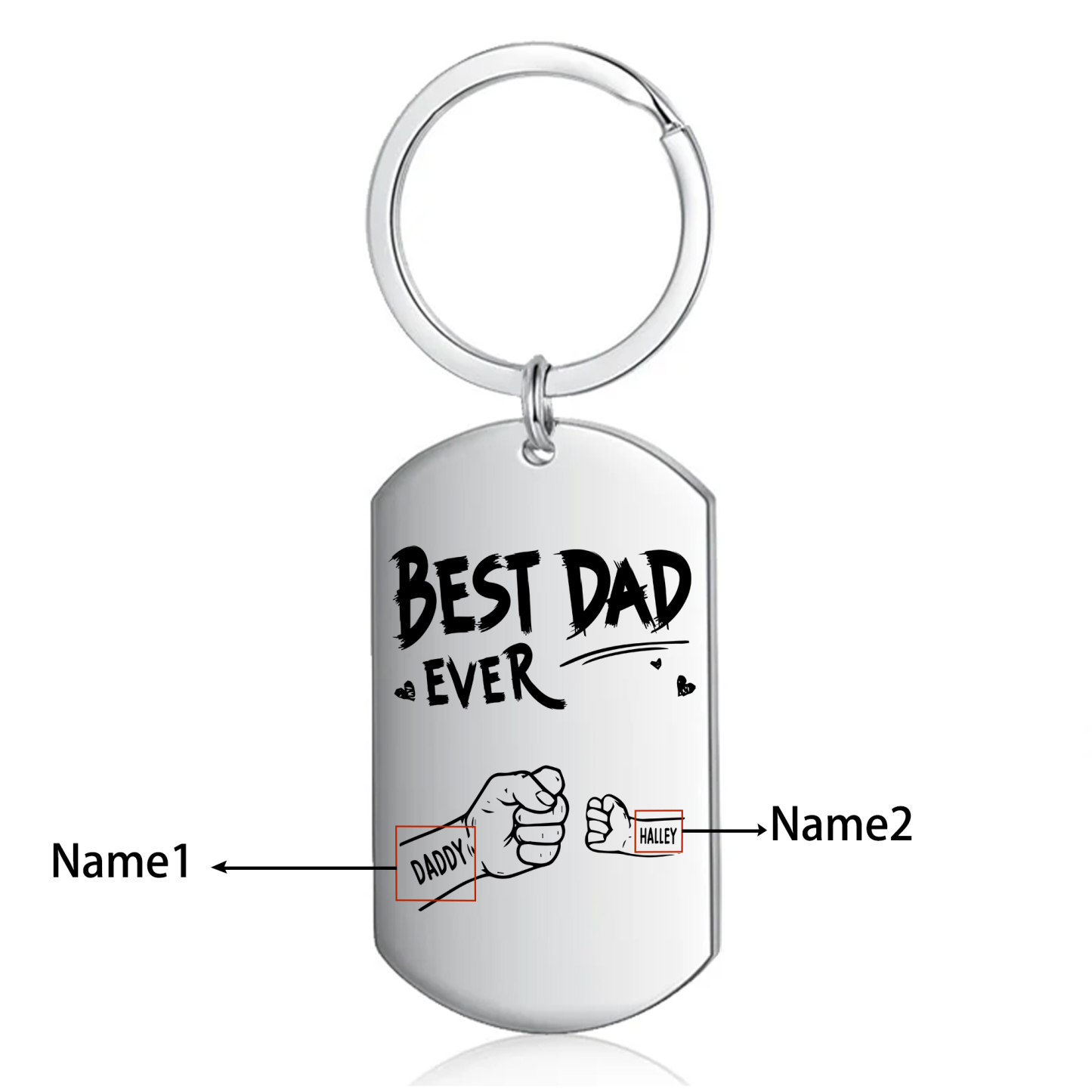 Personalized 2 Names Keychain Custom Fist Bump Keychain Father's Day Gifts - Best Dad Ever